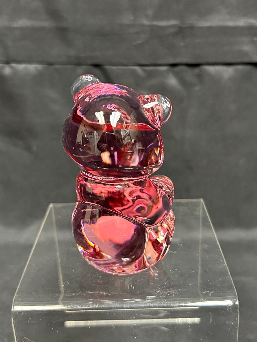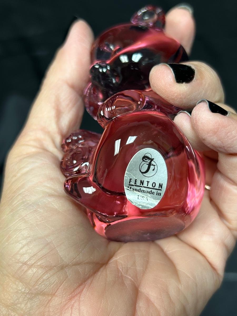 Pink Fenton Glass Teddy Bear Paperweight Figurine with Sticker