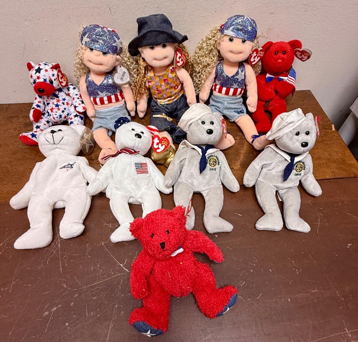 Lot includes 10 items: 2 Red Bears, 3 Beanie boppers, and 5 other Beanie Bears. All in good condition.