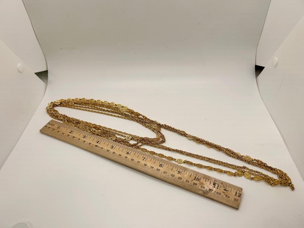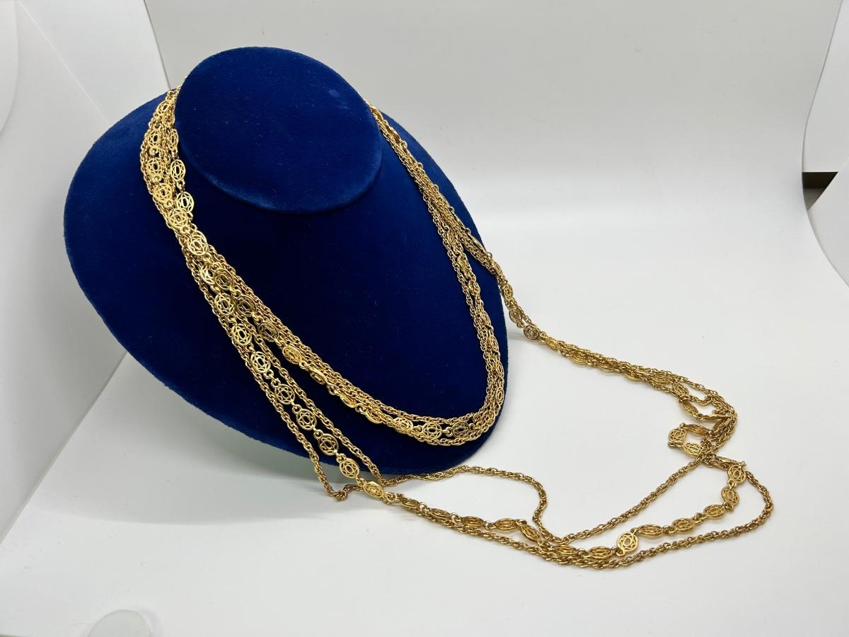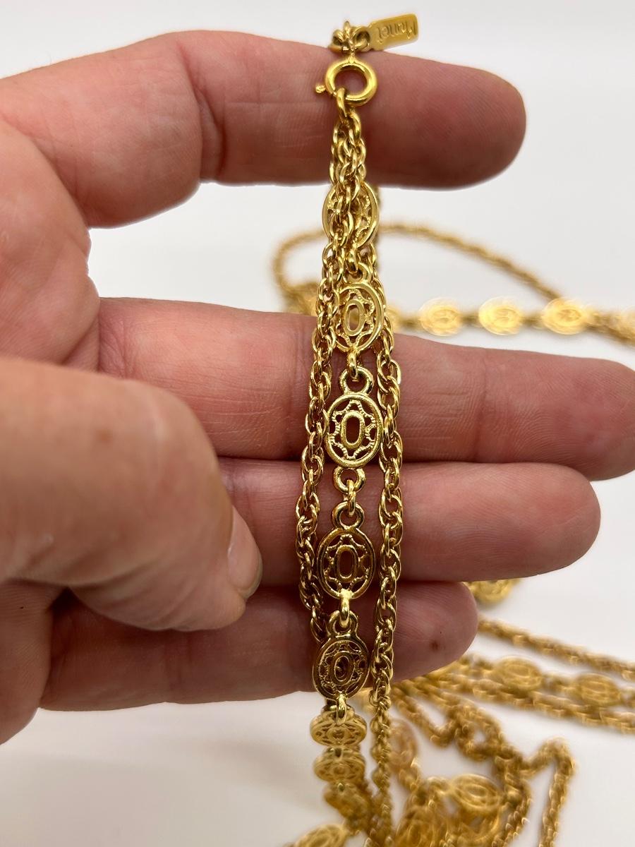 Vintage Extra Long Three Strand Gold Tone Necklace Monet