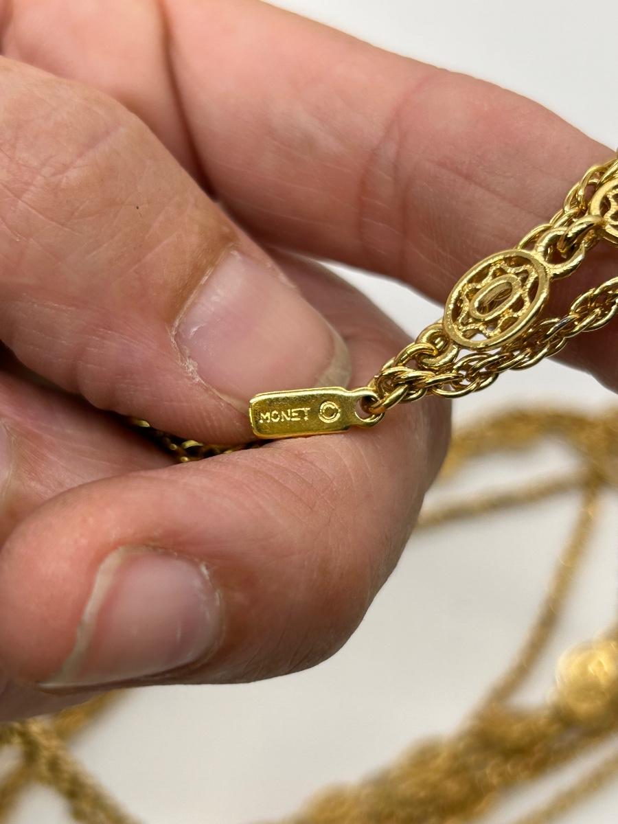 Vintage Extra Long Three Strand Gold Tone Necklace Monet. In good vintage condition.