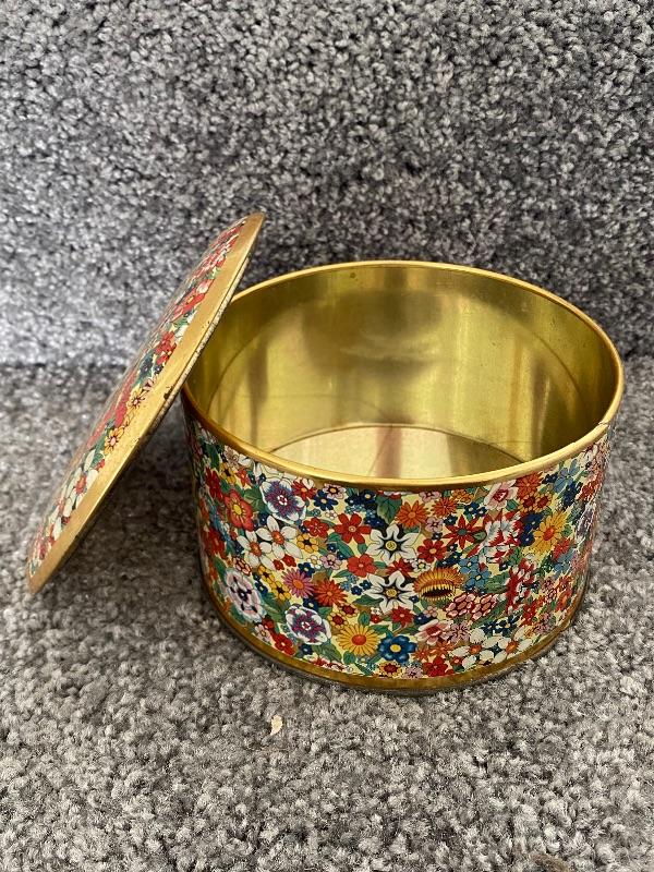 Vintage Round Chintz Flower Pattern Tin by Daher YD#022-0147