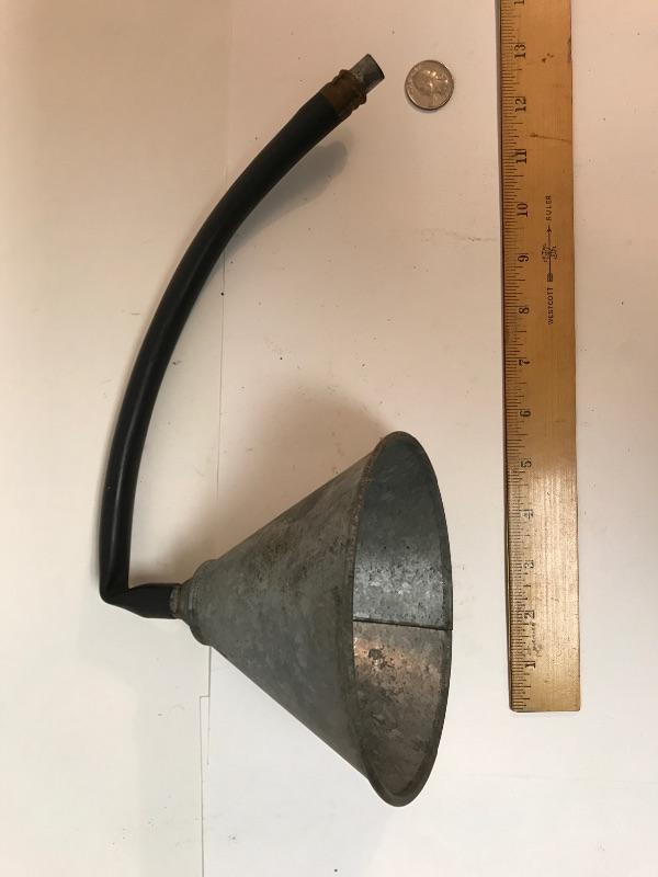 Non-ferrous funnel with attached rubber hose. #016-1120-00086