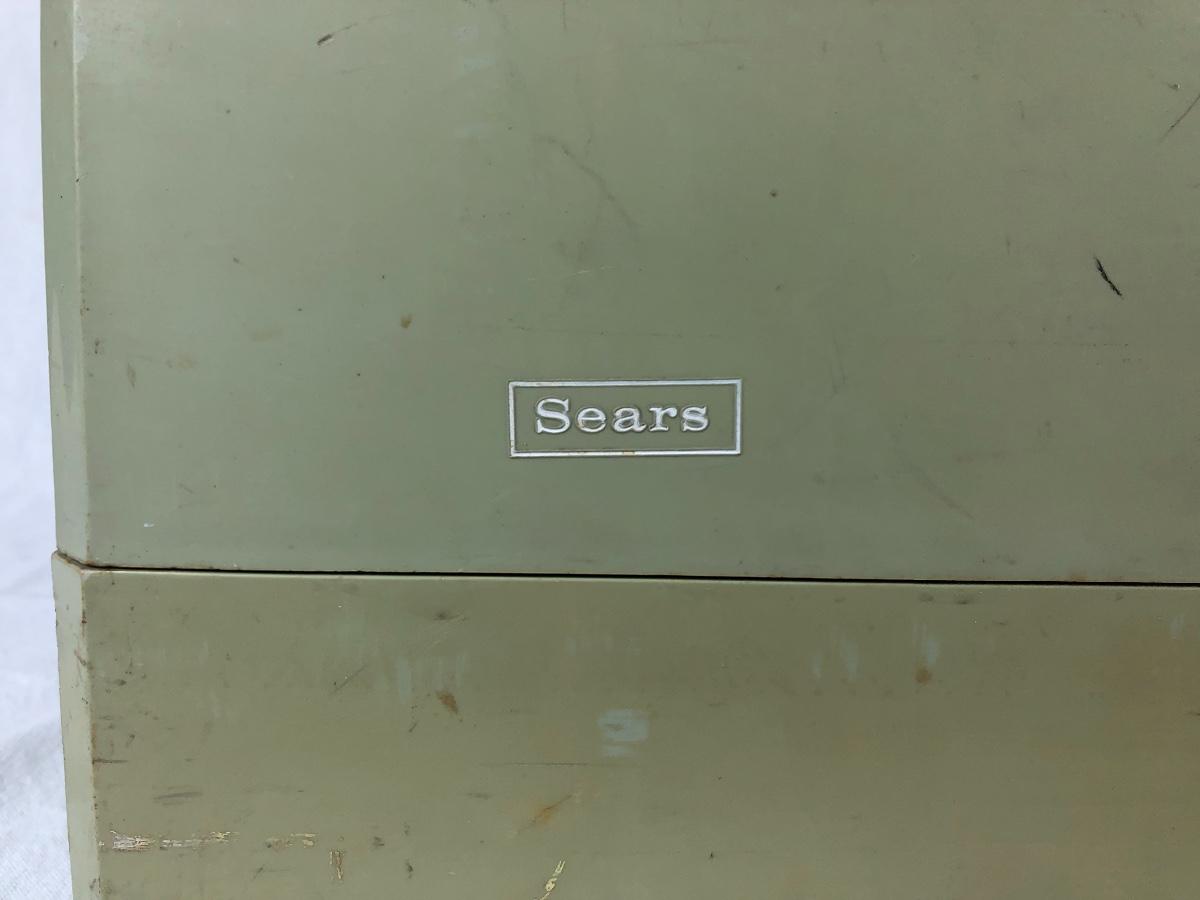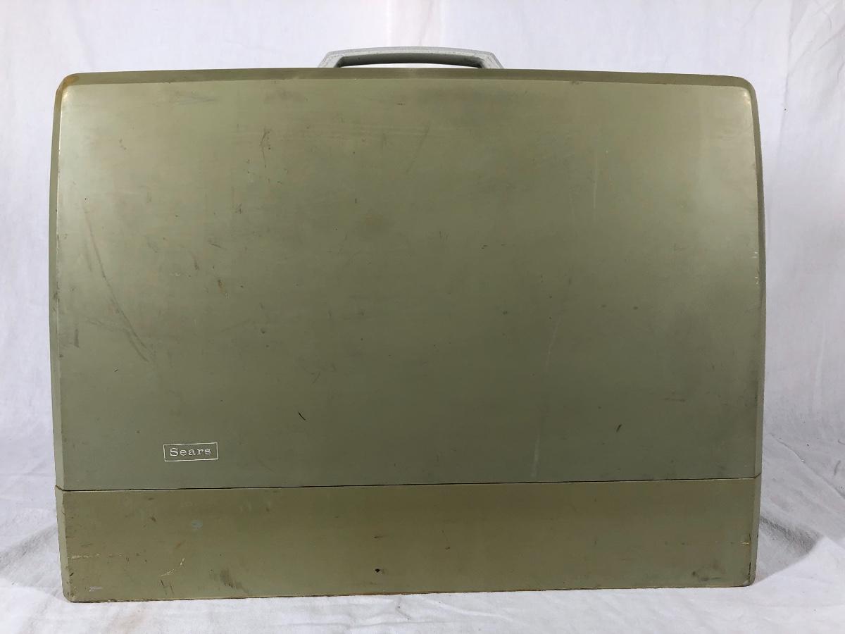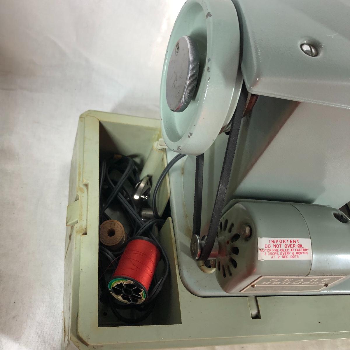 Vintage Sear Kenmore sewing machine. Has case and foot pedal. Needs to be fixed or serviced, wheel does not want to turn.