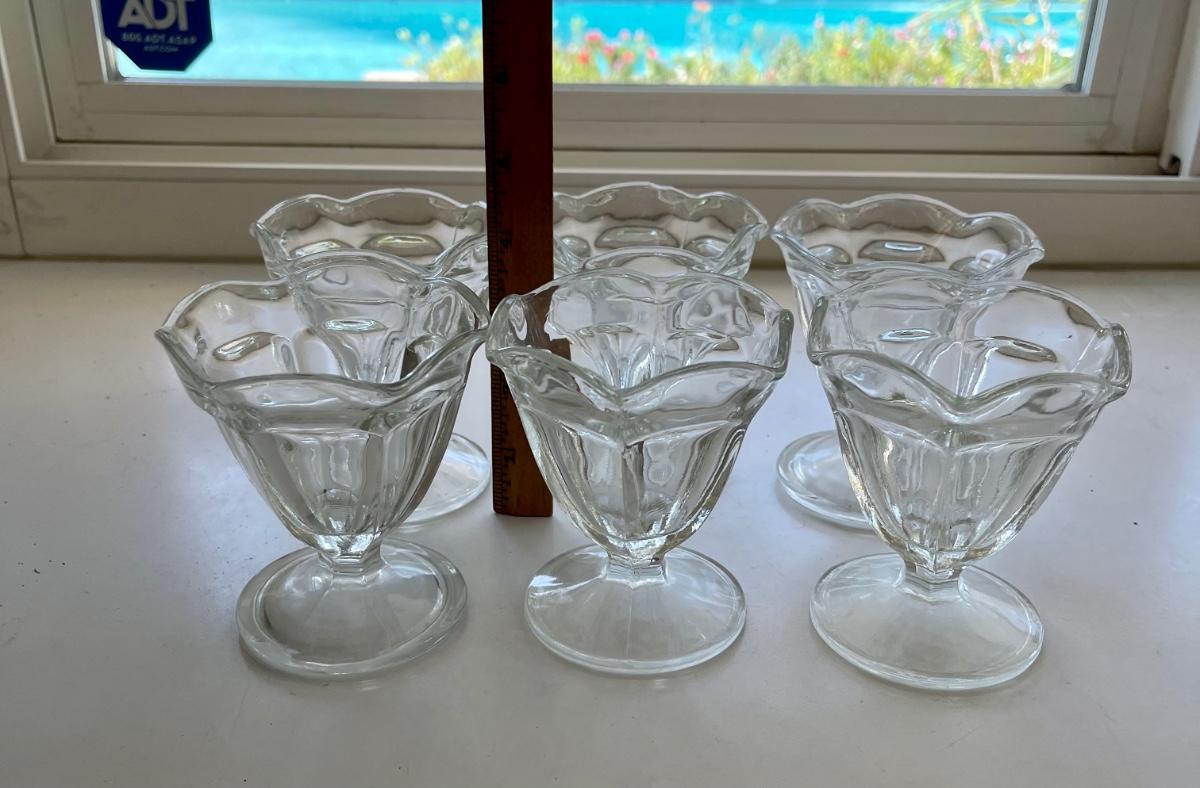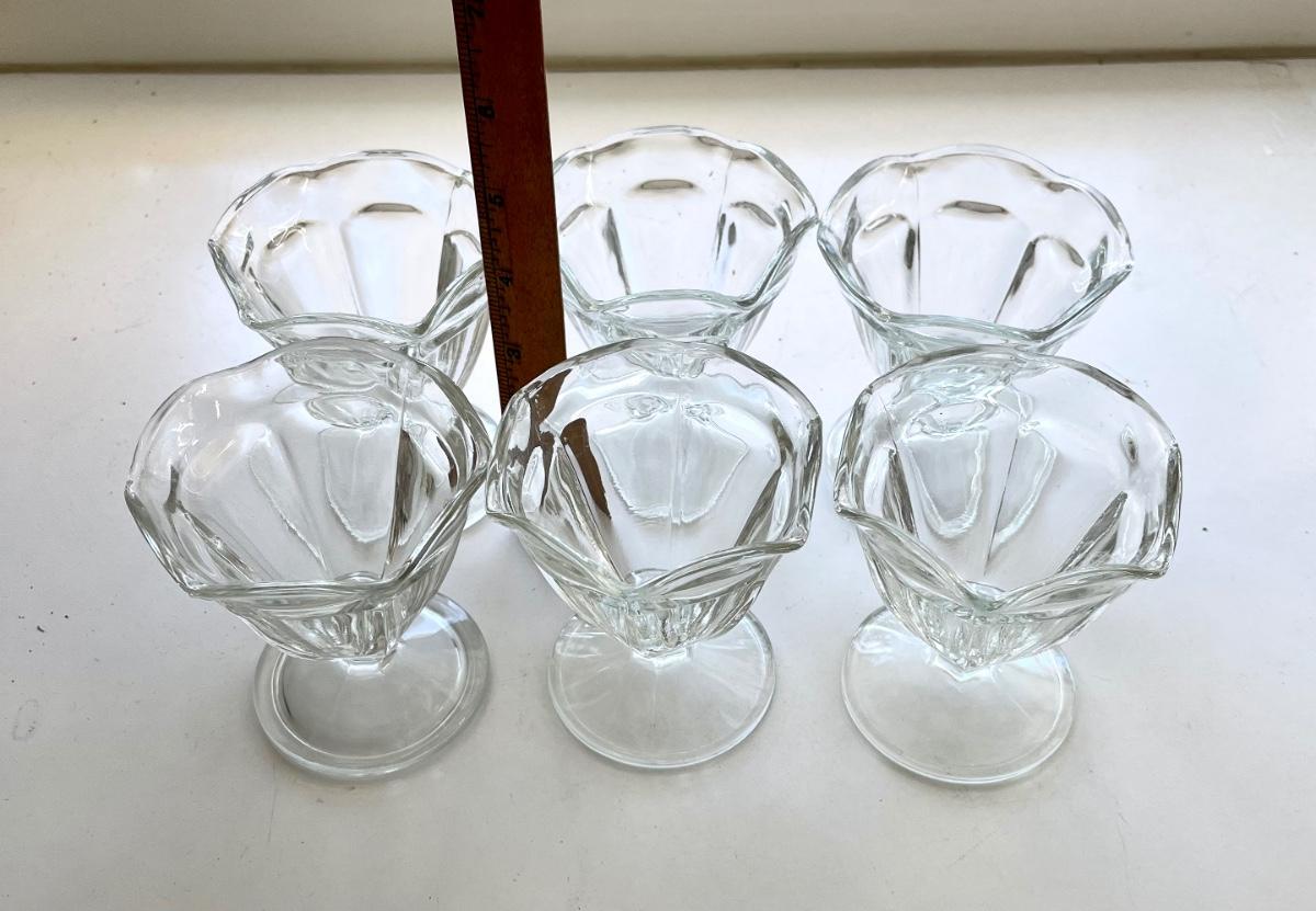 Set of 6 Vintage Retro Sundae Ice Cream Fruit Glass Bowls Dishes. Good used condition.