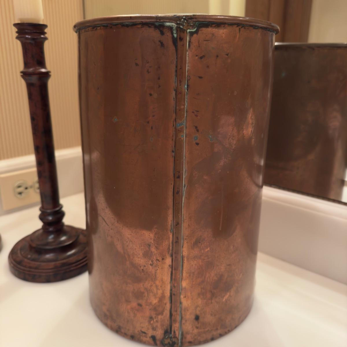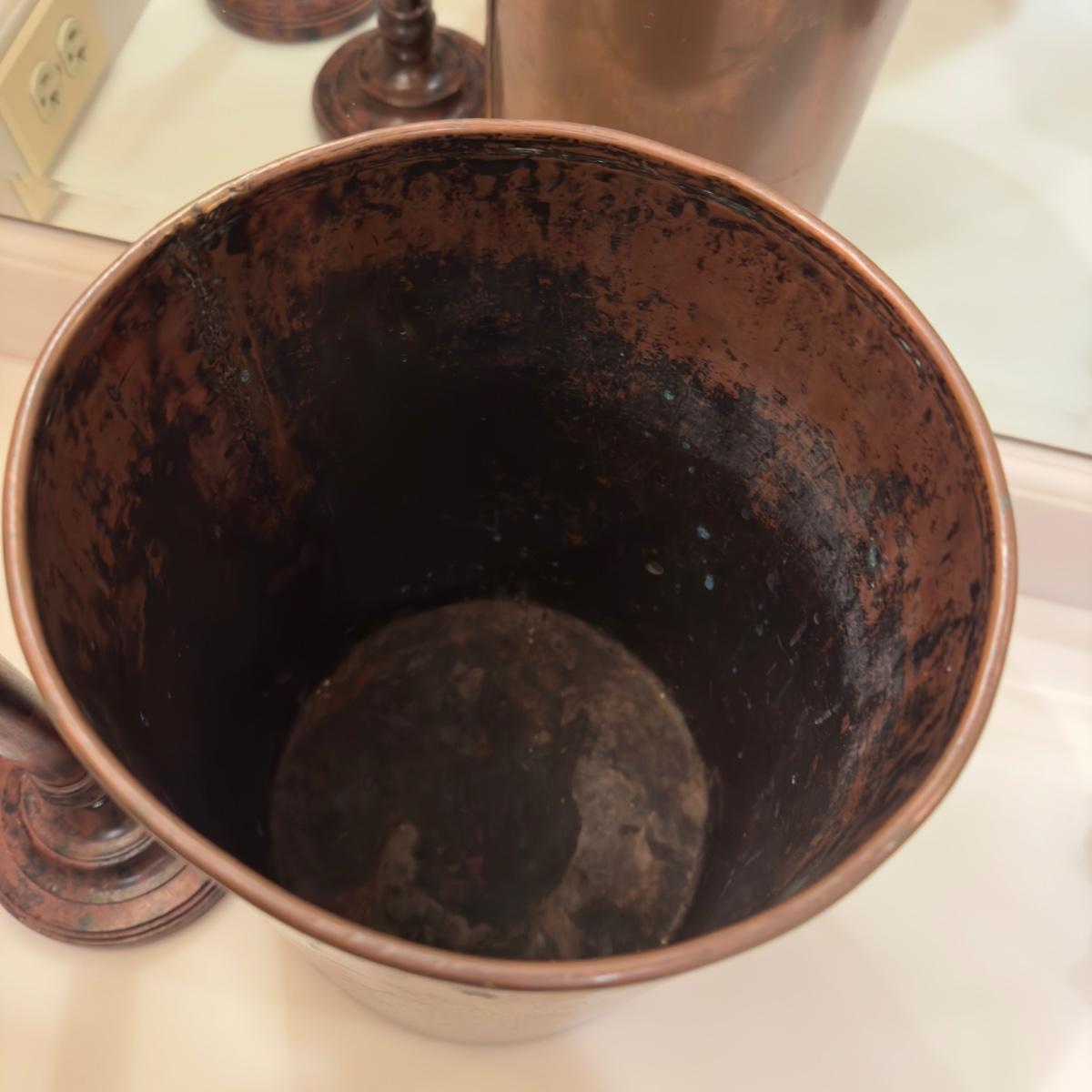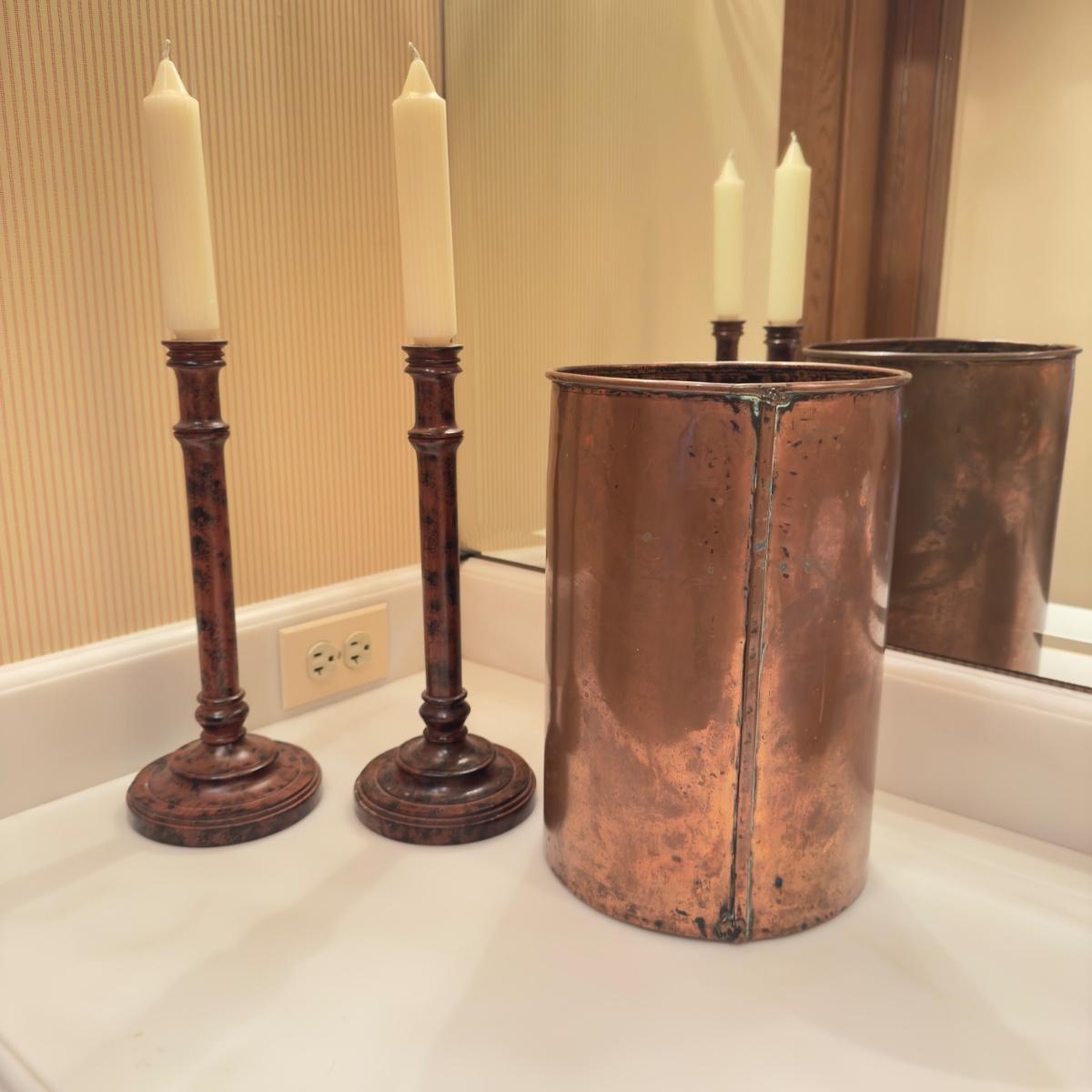 GH1053 Antique Copper Waste Can with English Painted Wooden Candlesticks