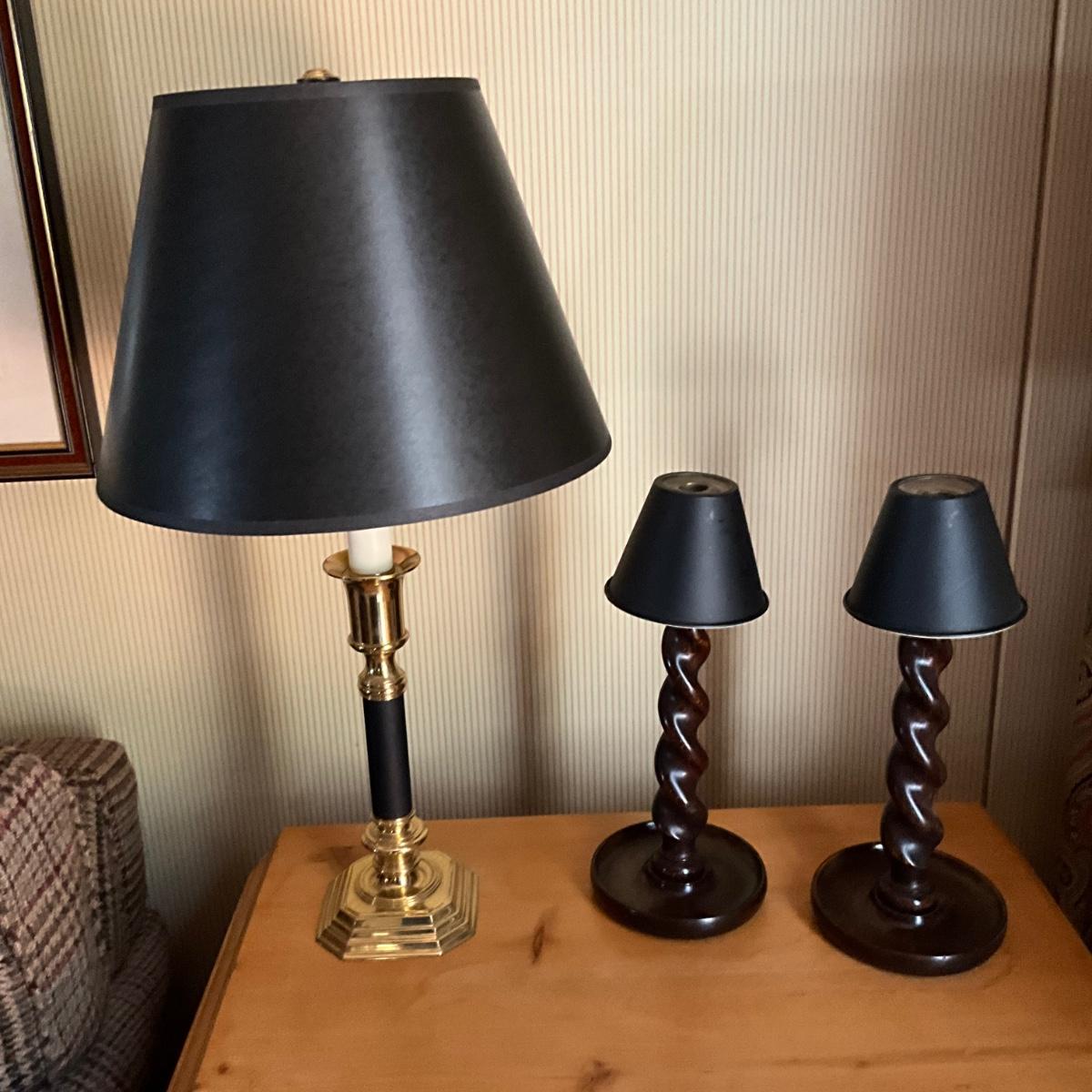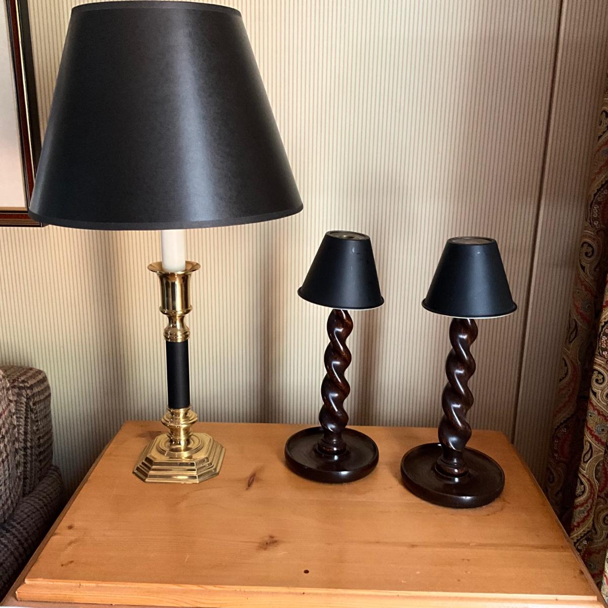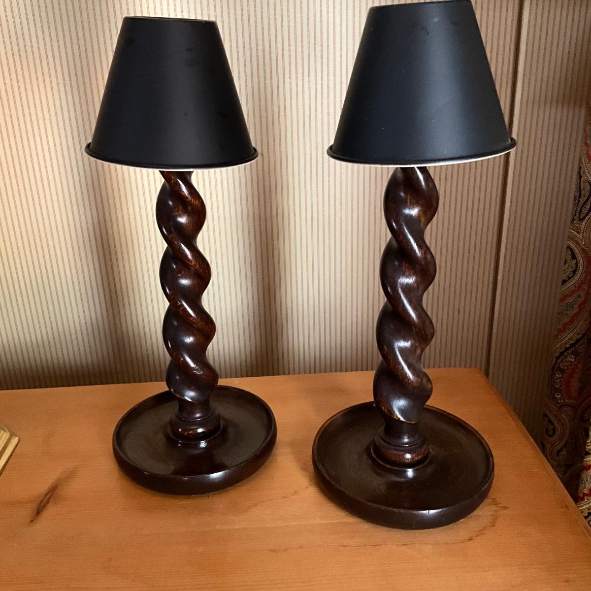GH916 Pair of Barley Twist Wooden Candlesticks and Brass Candlestick Lamp