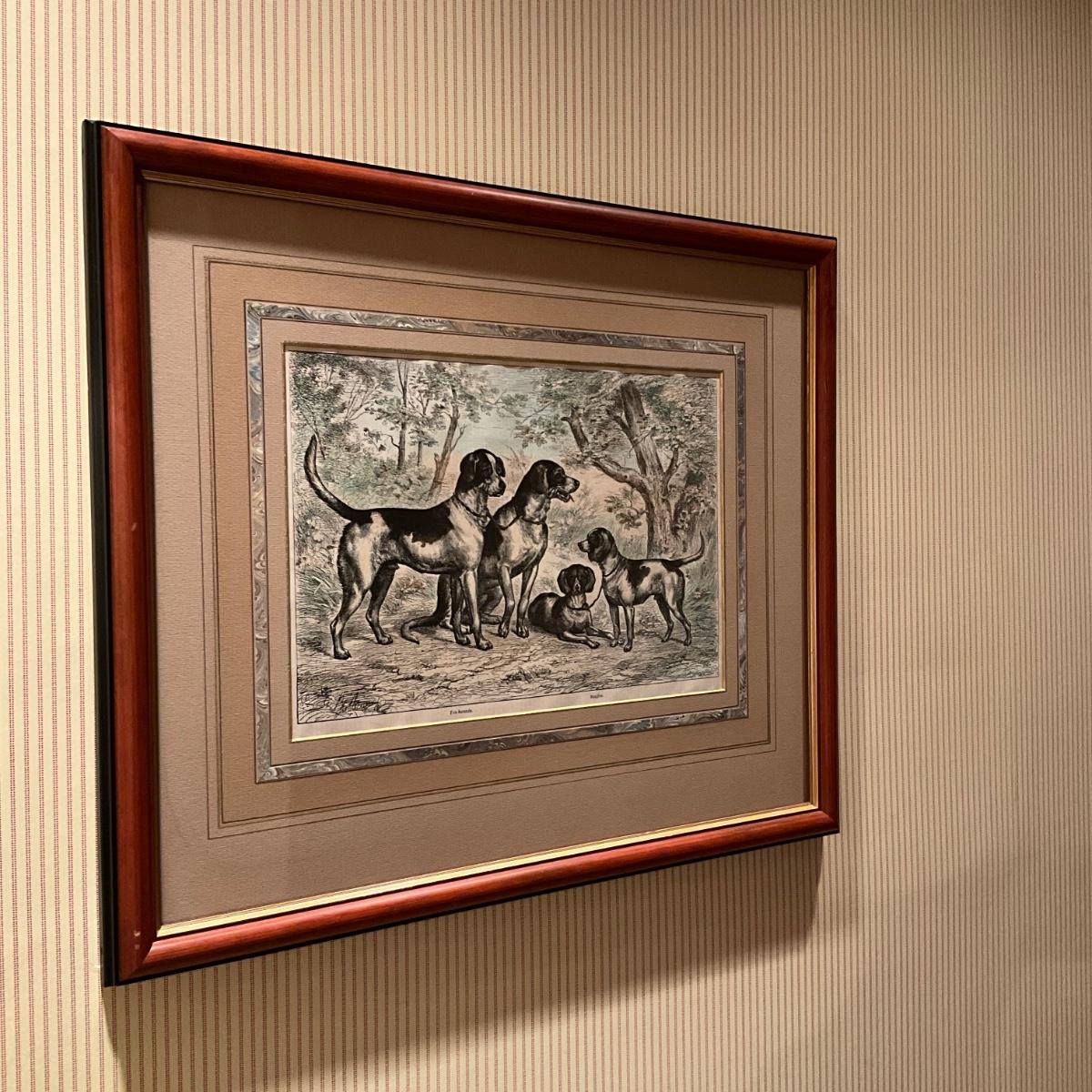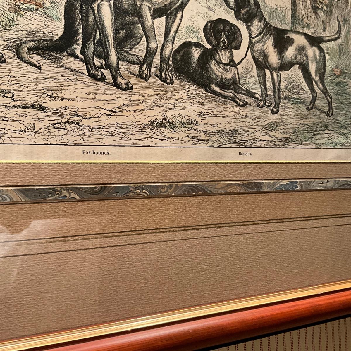 GH932 Antique Colored Engraving Fox Hounds & Beagles