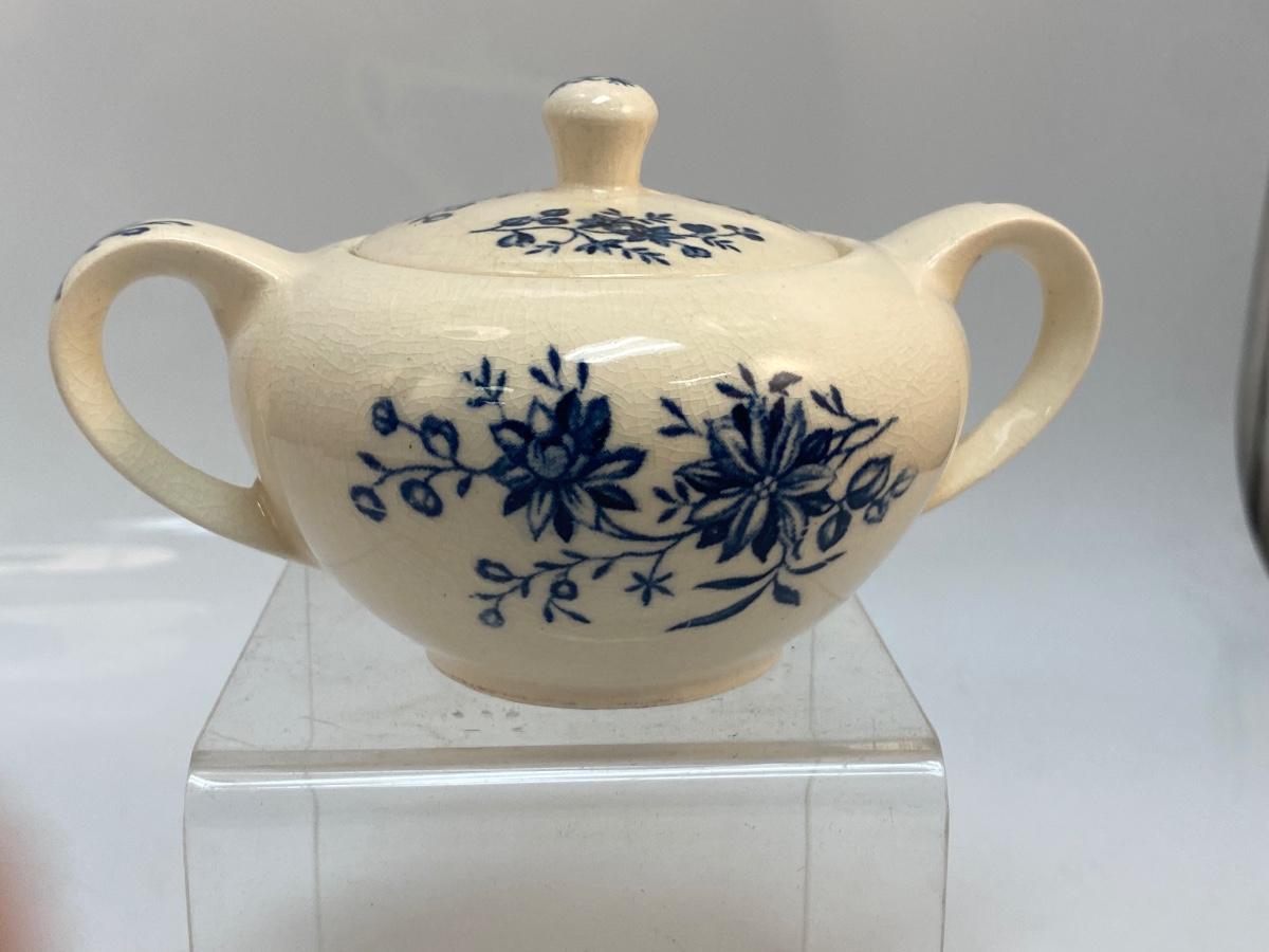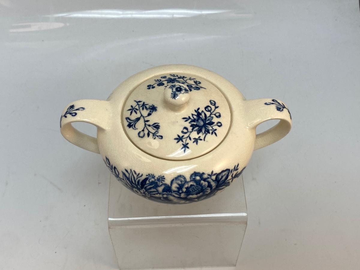 Vintage Cobalt Blue Floral Pattern Ceramic Lidded Sugar Bowl Milady's Bouquet Japan