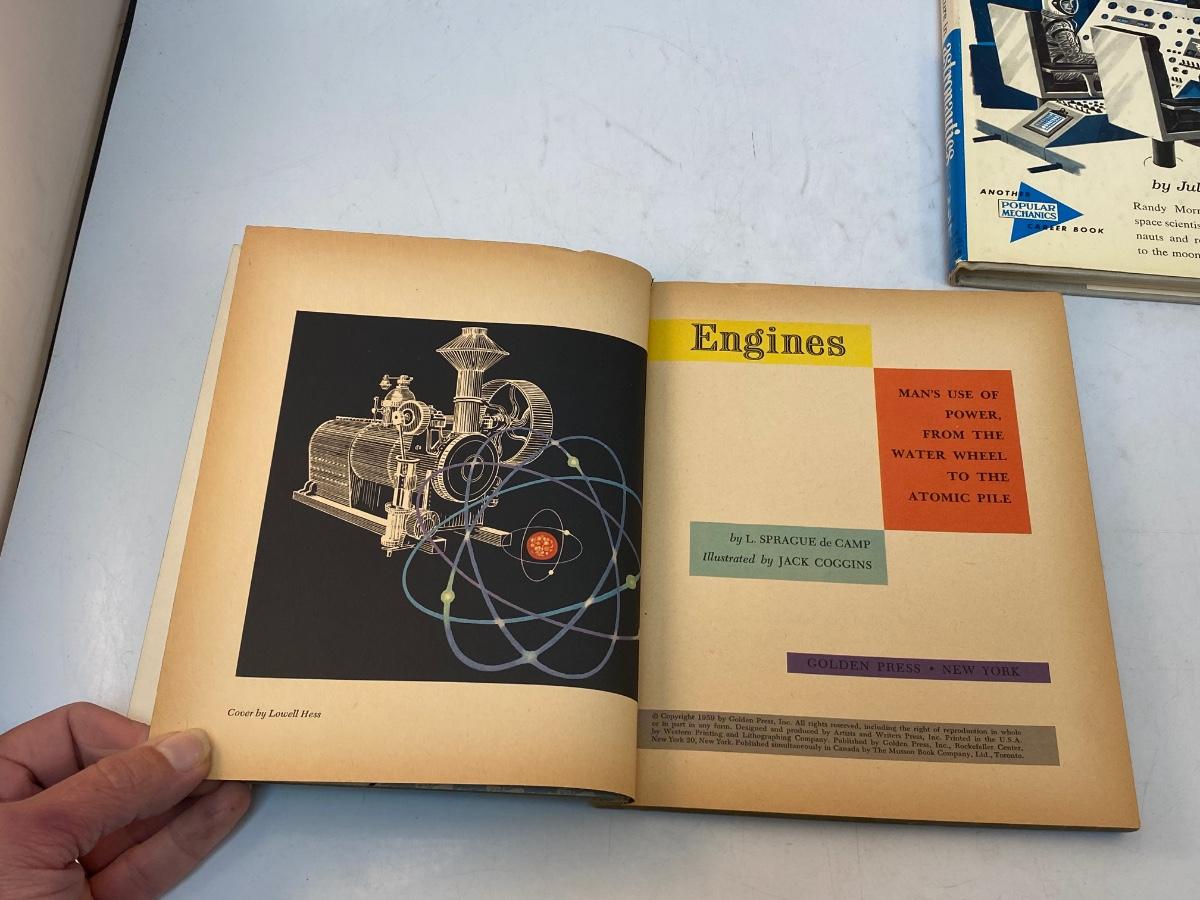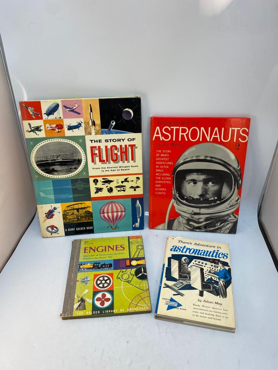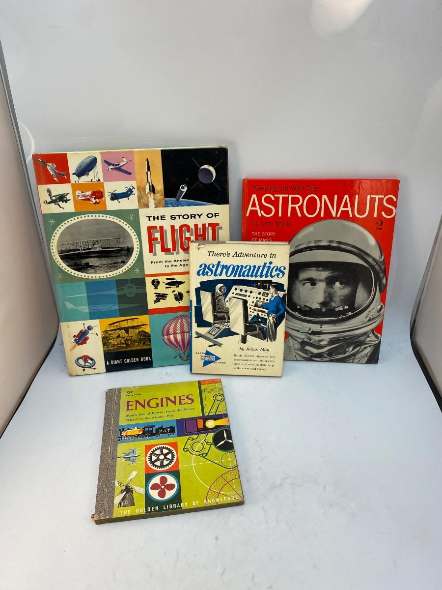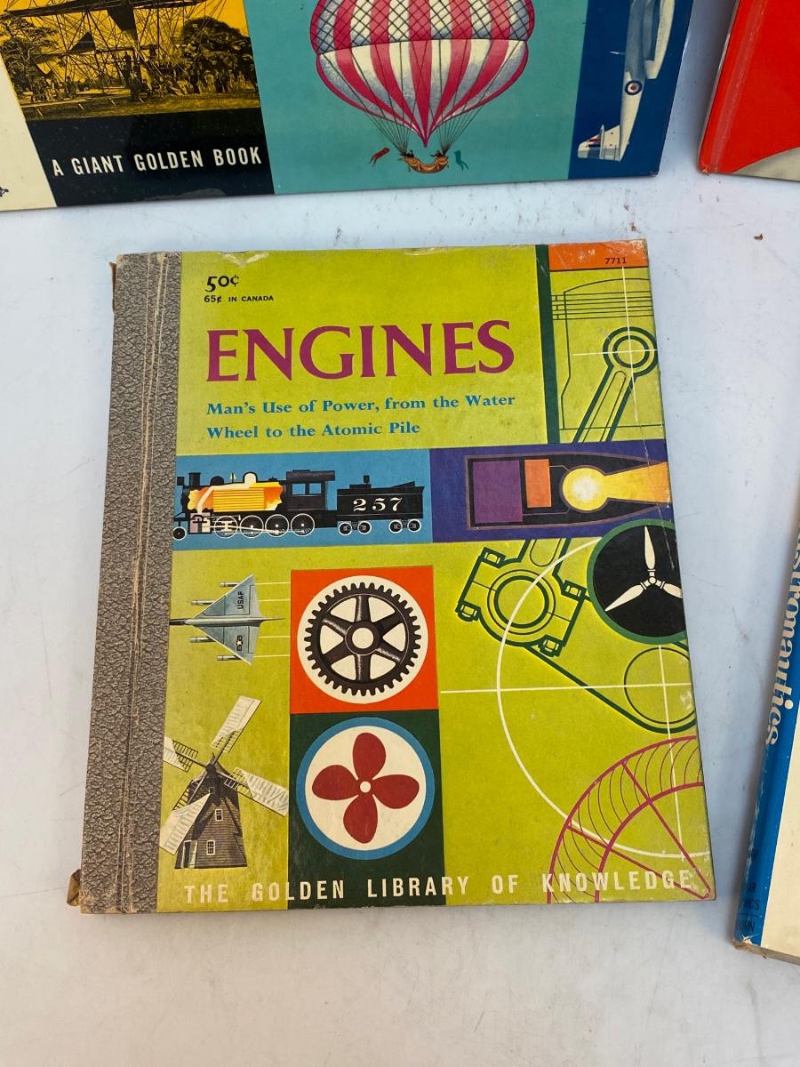 1950s 1960s Children's Youth Science Book Lot Astronauts Flight Engines. In vintage read condition. A couple of the books are from Golden Books. May have names written inside.