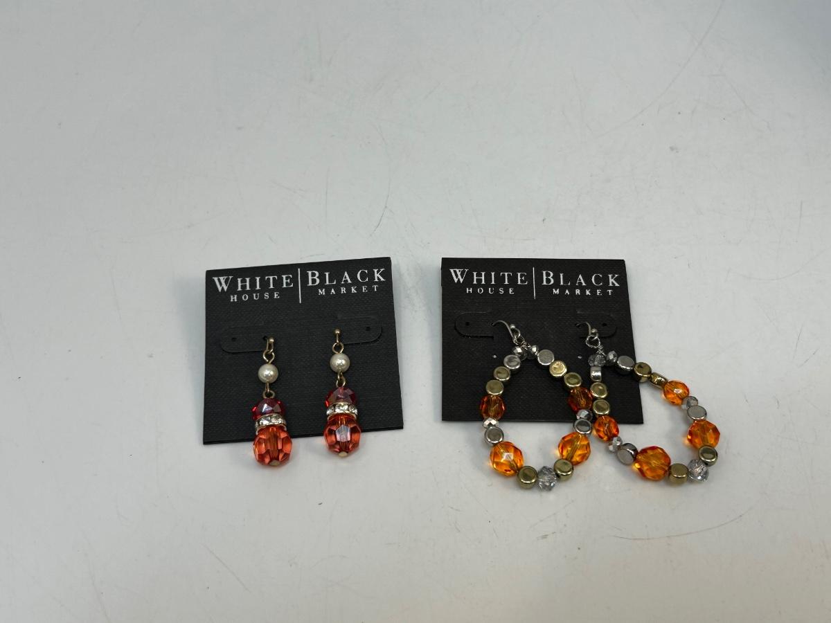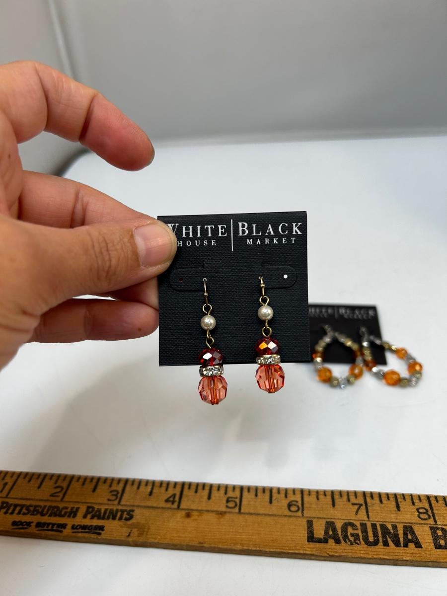 Two Pairs of Beaded Dangling Earrings on Hang Cards White House Black Market
