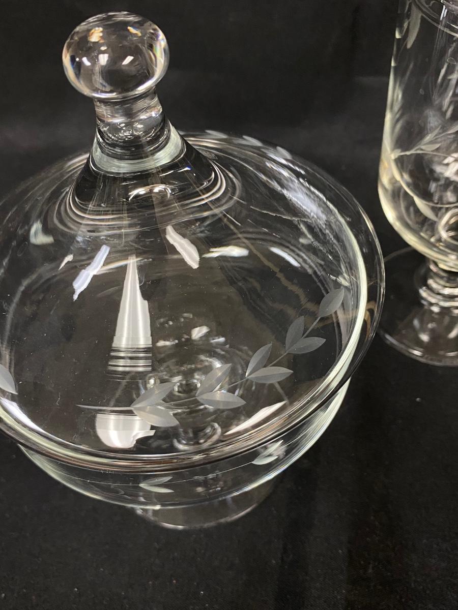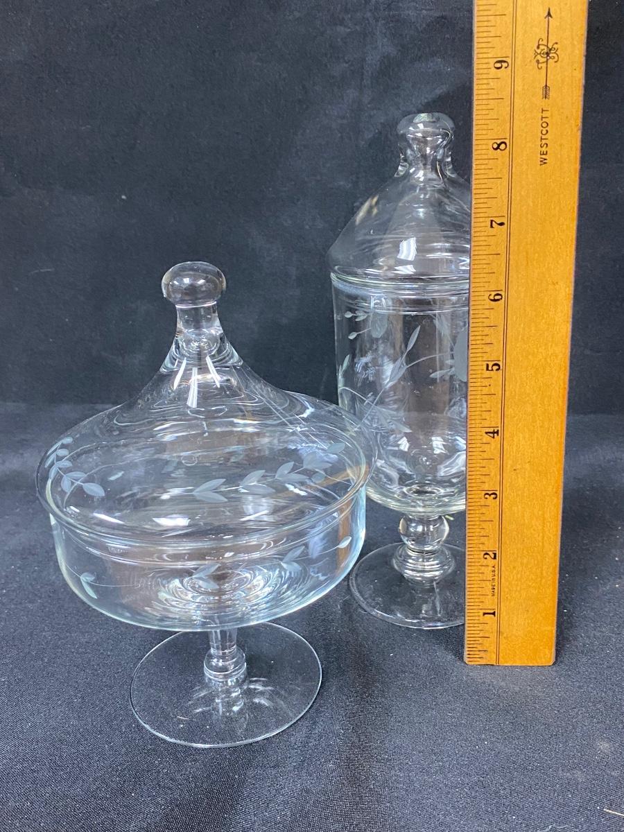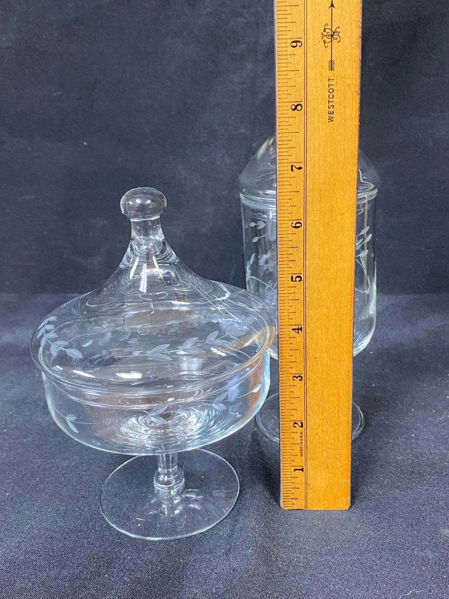 Pair of Vintage Etched Crystal Princess House Apothecary Style Pedestal Candy Jars