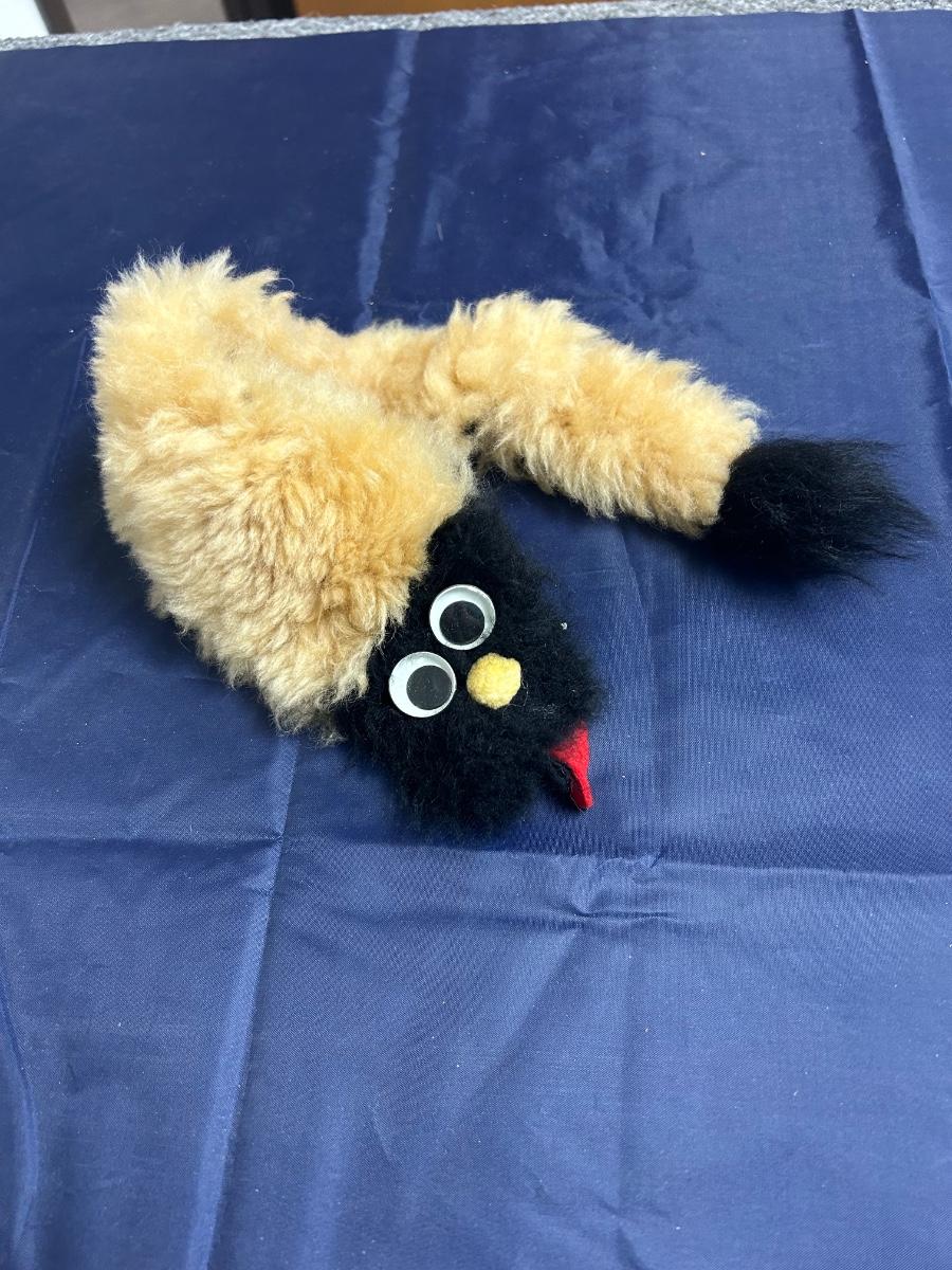 Vintage Funky Wool Sherpa Fleece Hand Made Worm Caterpillar Toy Googly Eyes. Unsure what it was made for.