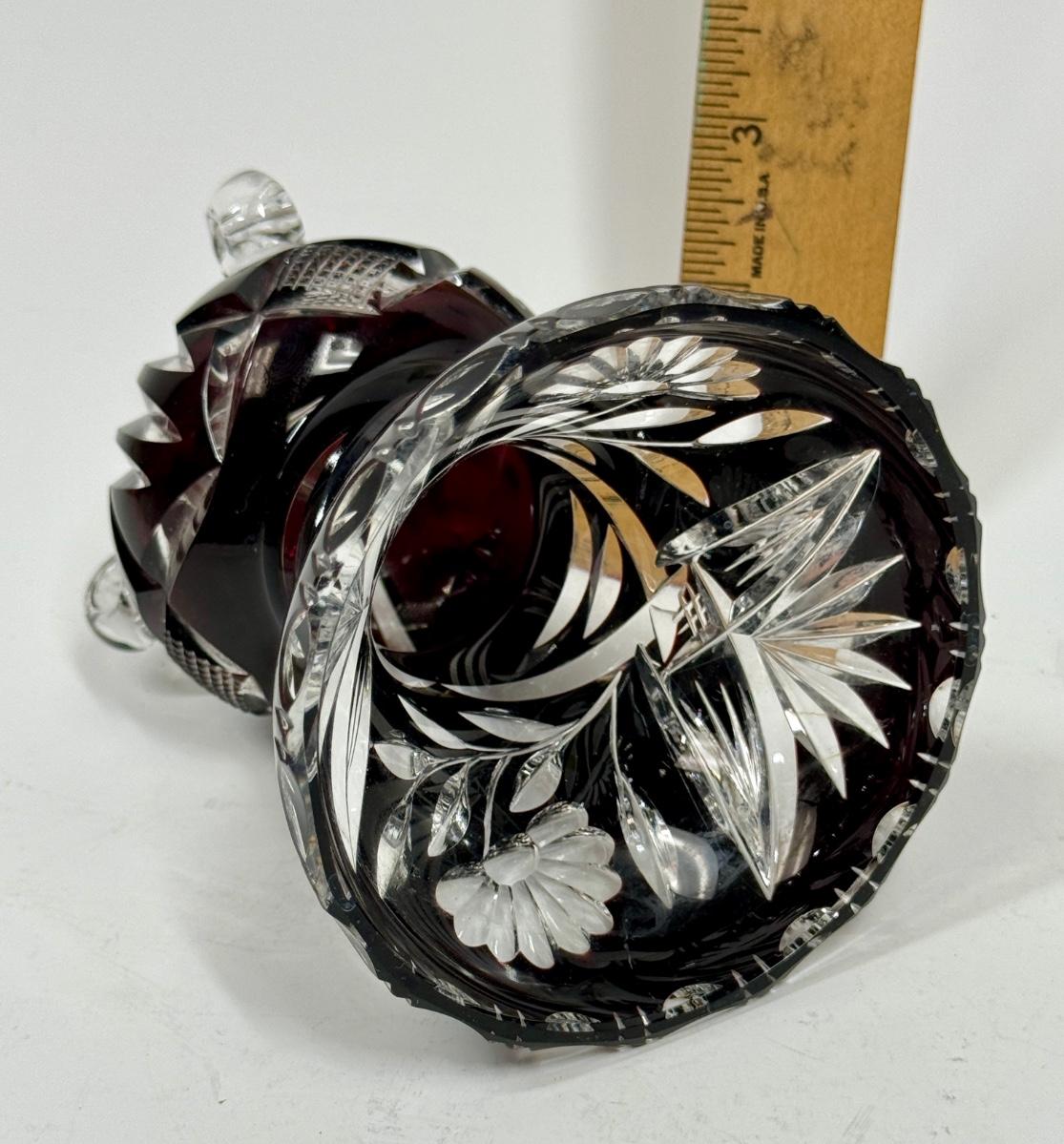 Vintage Bohemian Czech Dark Ruby Red Cut to Clear Crystal Footed Vase
