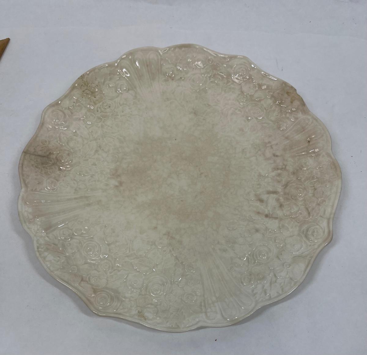 Antique Pottery Ceramic Platter from Czechoslavia off-white 12" dia.