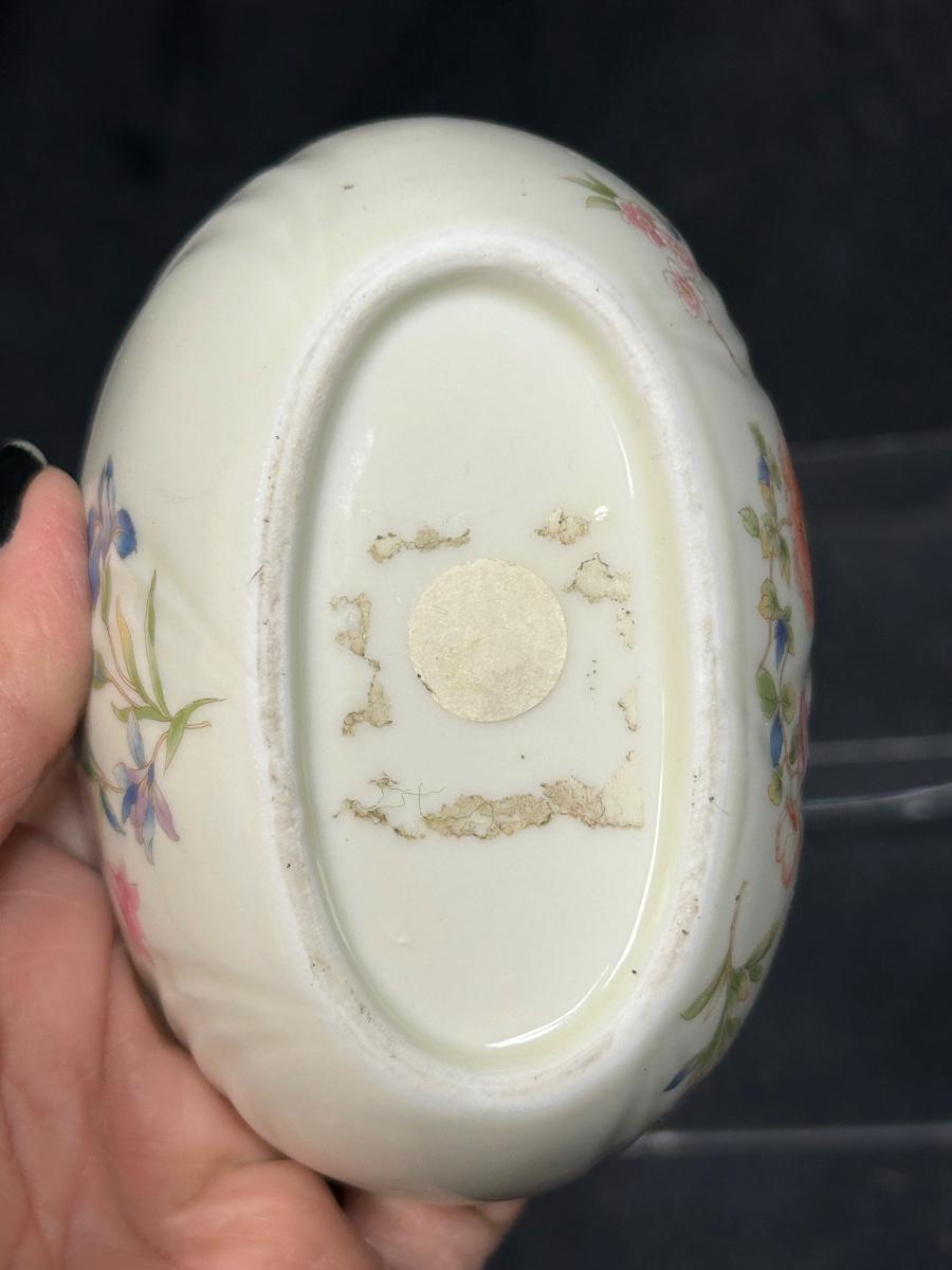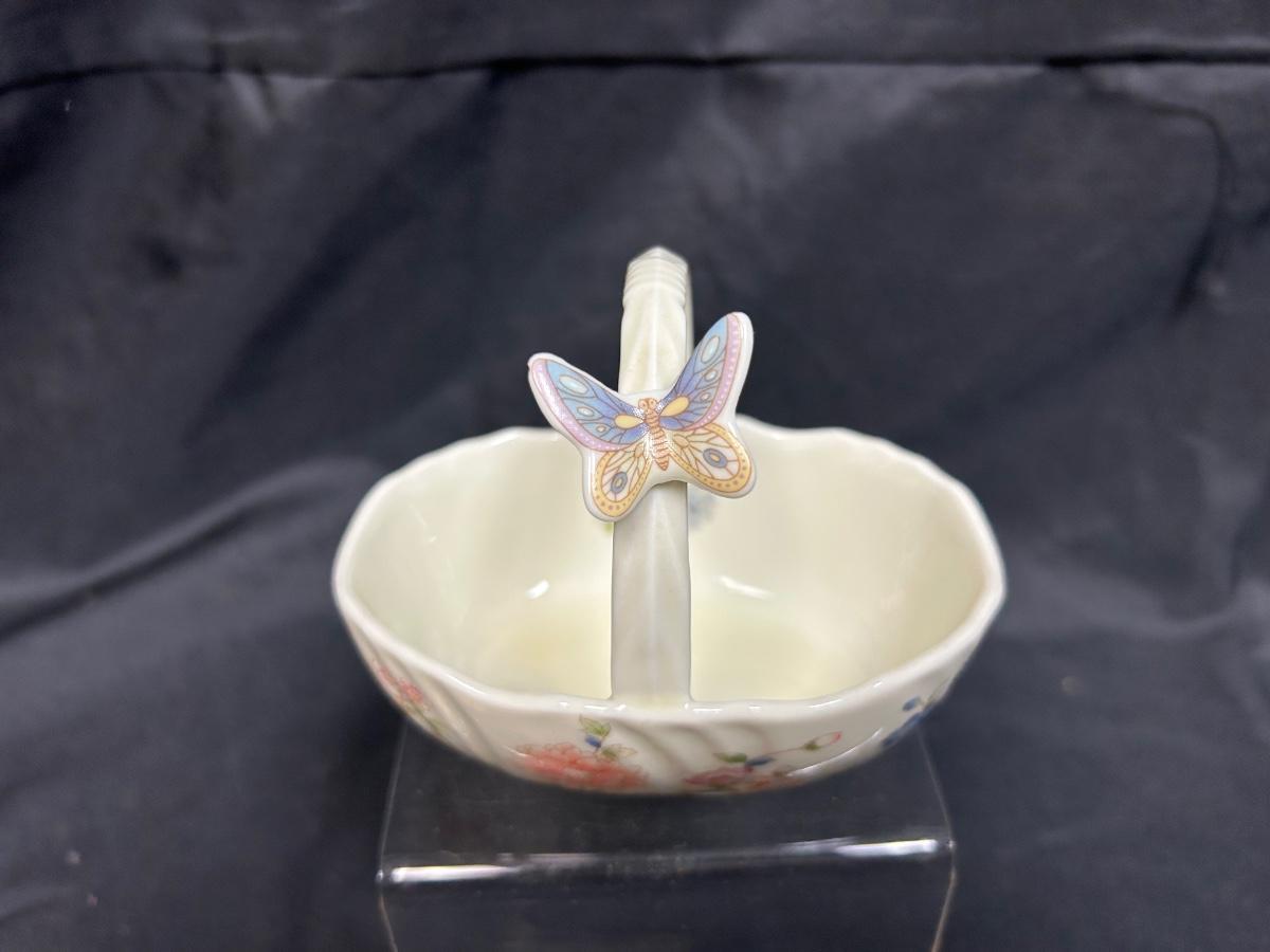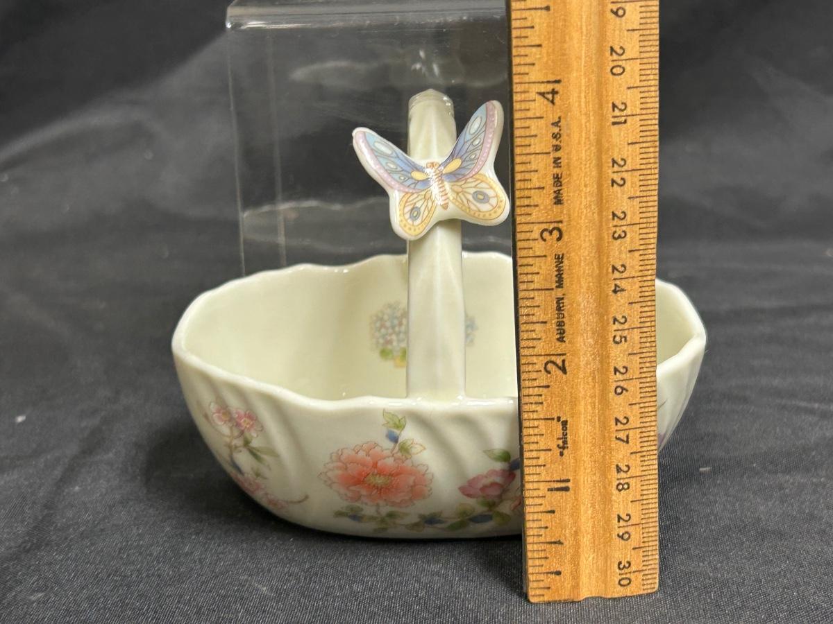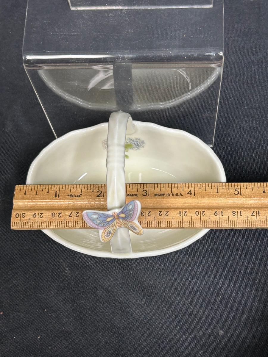 Vintage Porcelain Ceramic Butterfly and Flowers Trinket Dish Basket. In good condition. Sticker residue on the bottom but no name or branding.