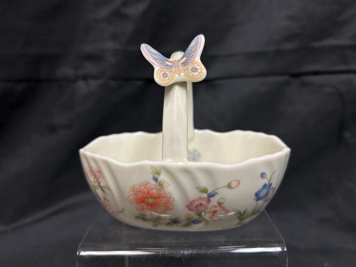 Vintage Porcelain Ceramic Butterfly and Flowers Trinket Dish Basket