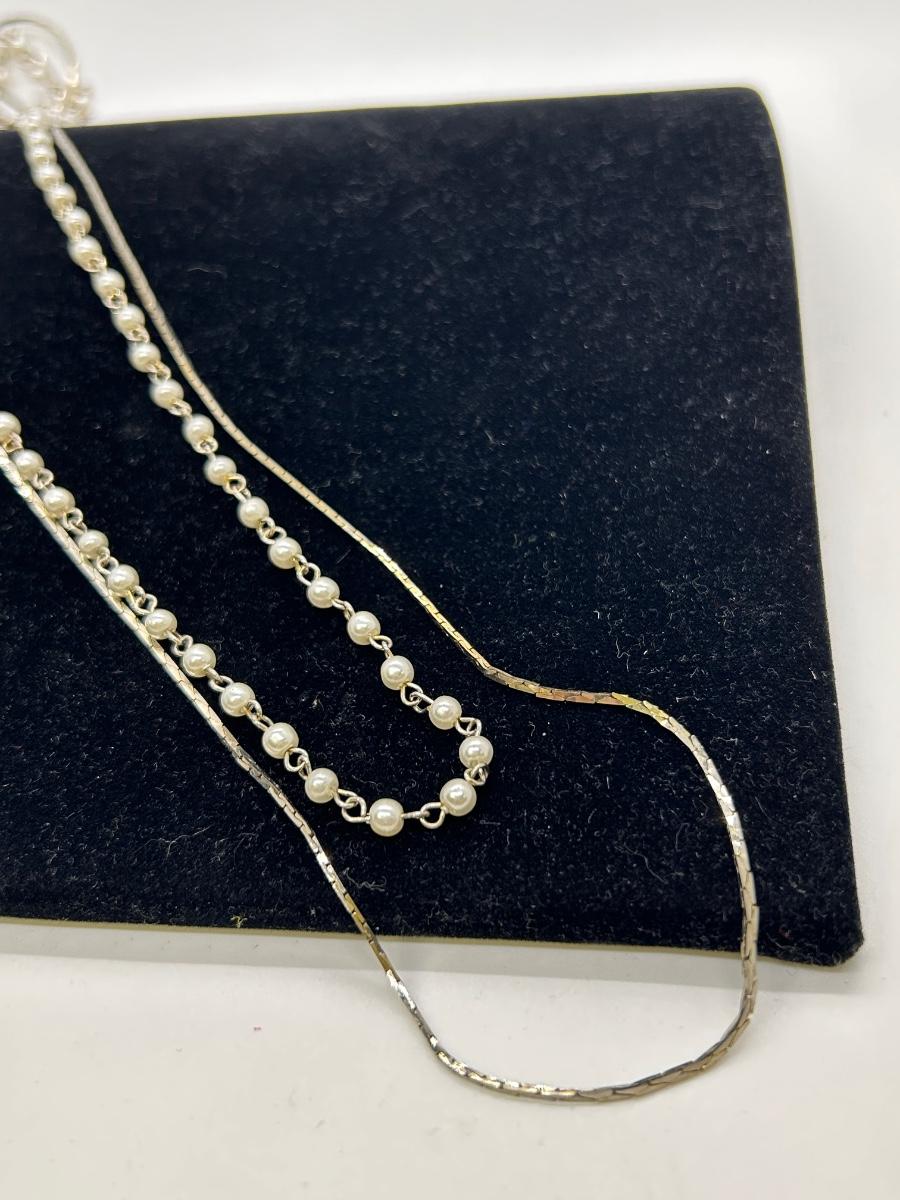 Silver Tone Double Strand Necklace with Faux Pearl Beads