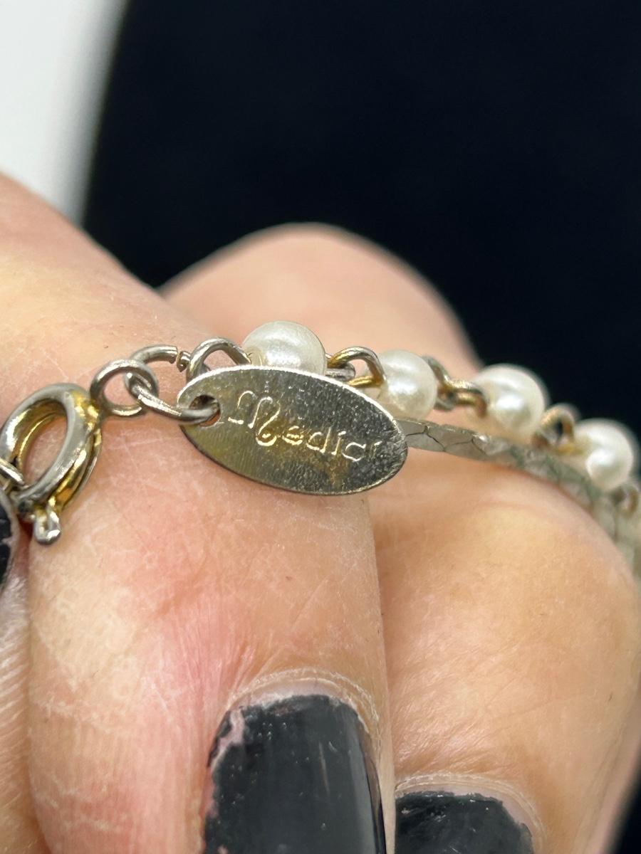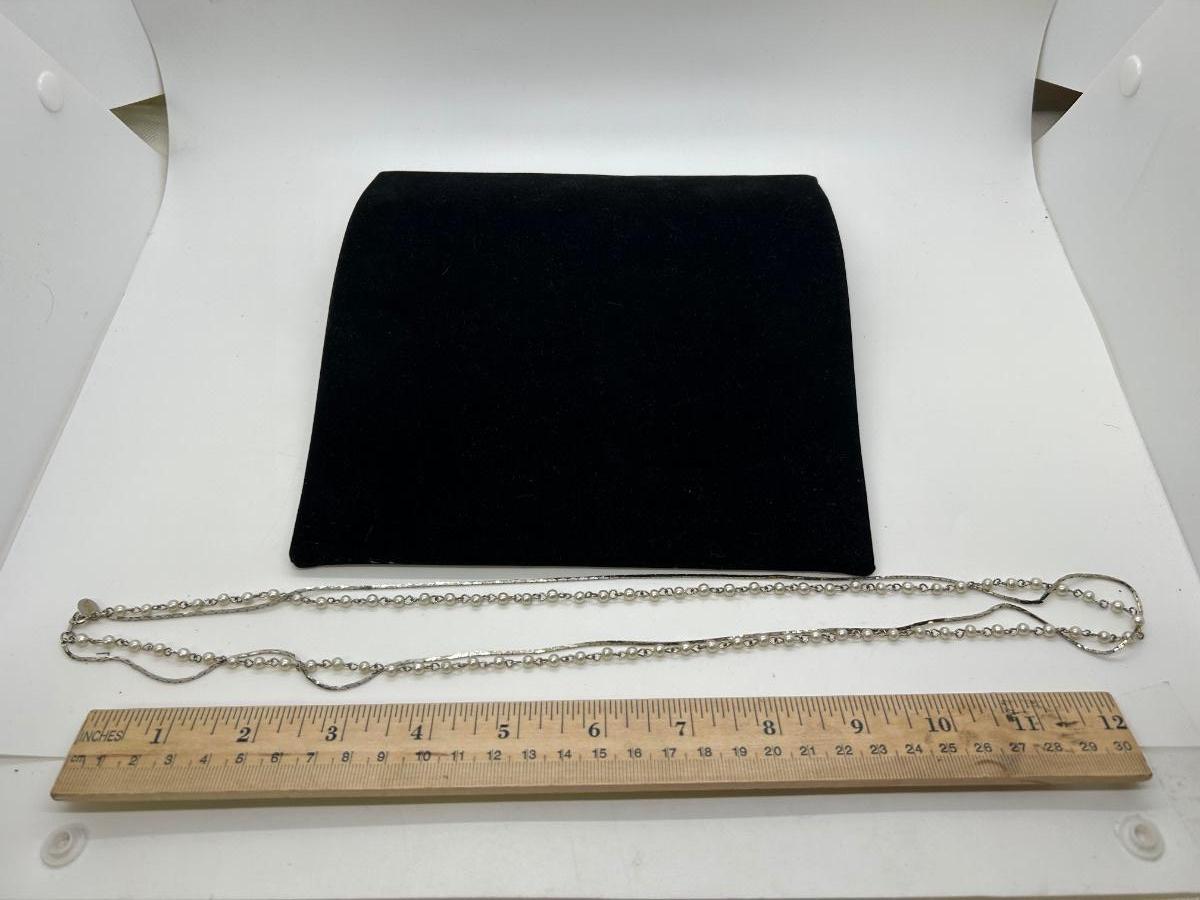 Silver Tone Double Strand Necklace with Faux Pearl Beads. In good condition. Long length.