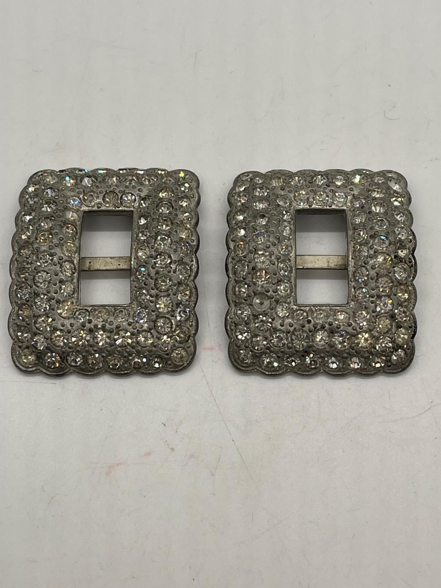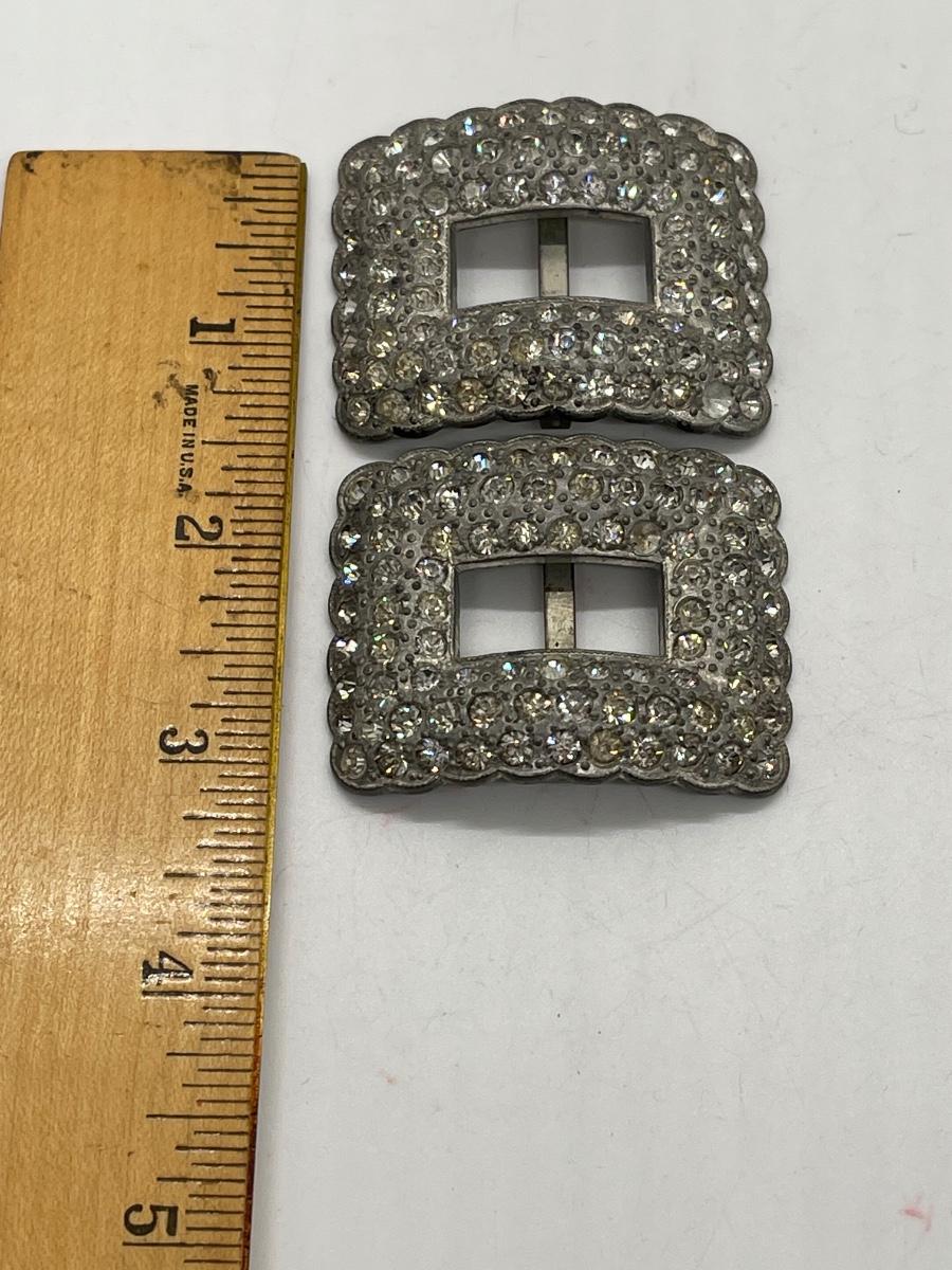 Vintage Rhinestone Buckles - pair - heavy metal