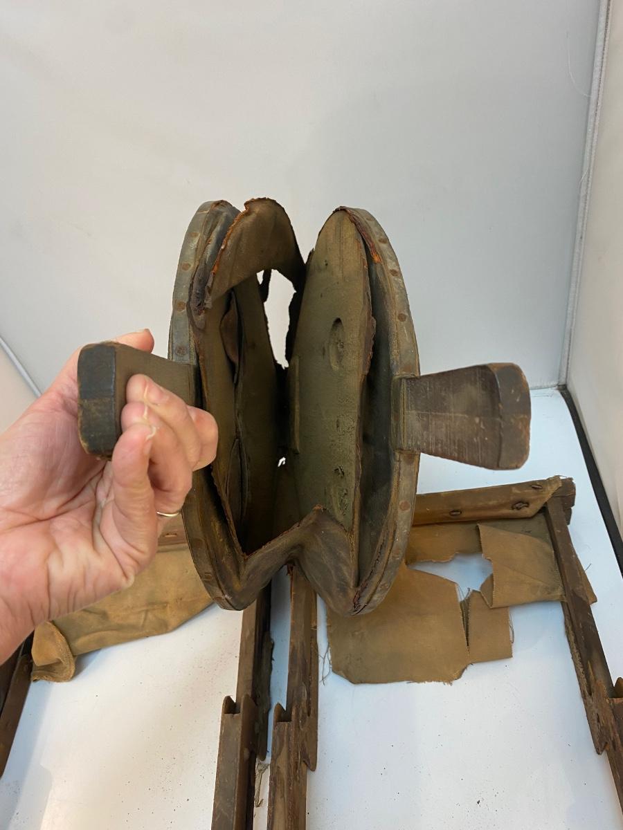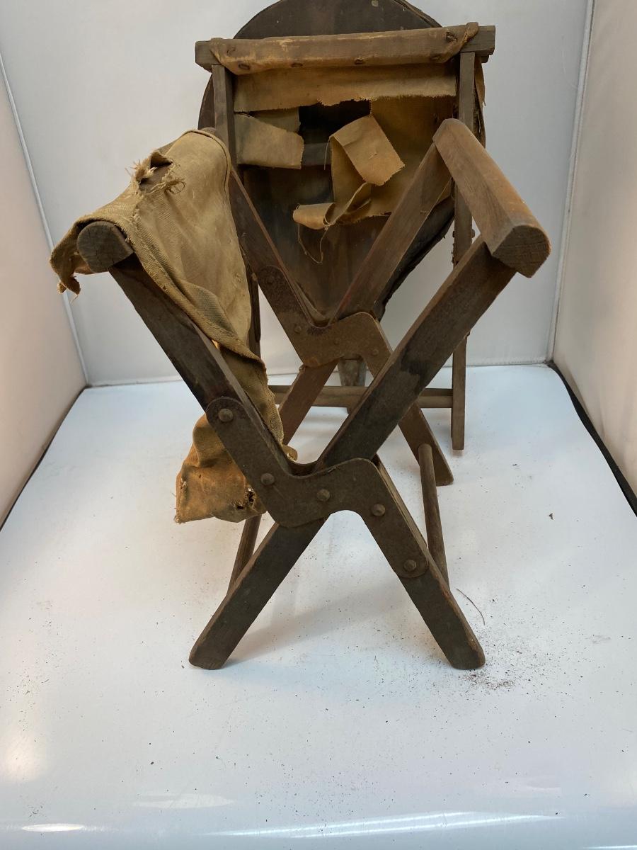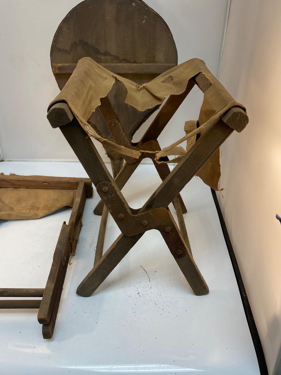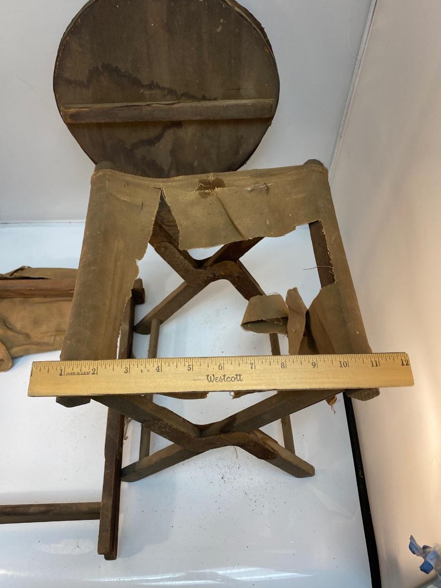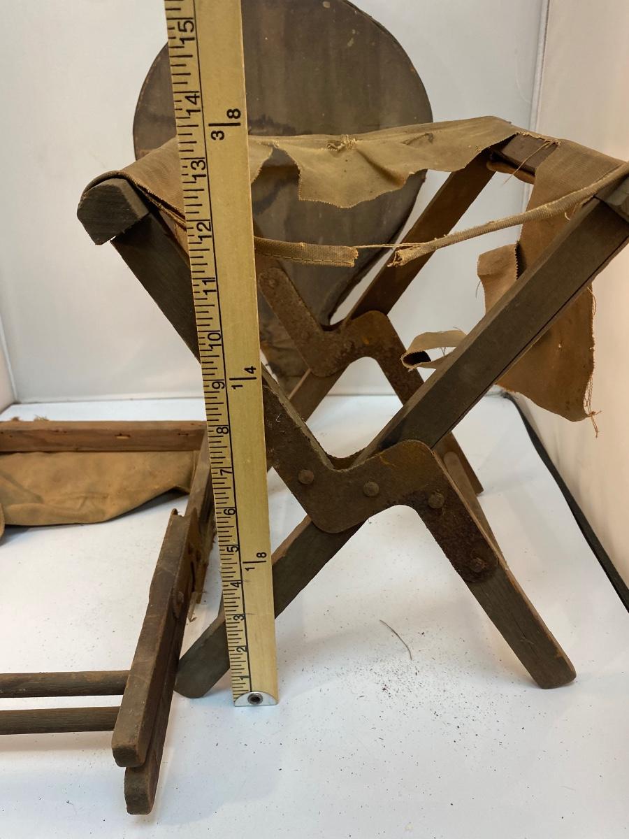 Vintage Rustic Cabin Camp Decor Fireplace Bellows and Folding Stools. Good for decor possible repurpose with a little work.