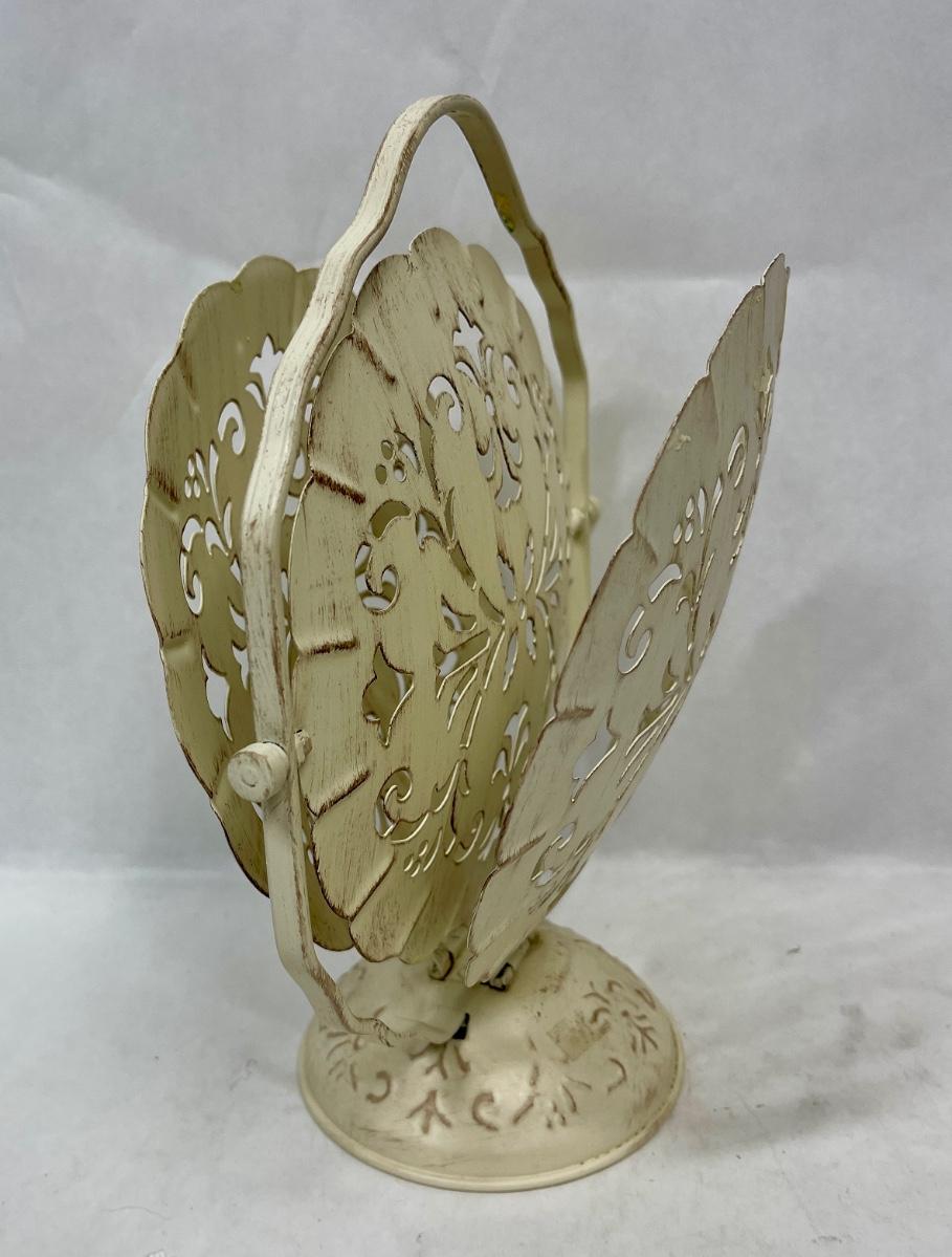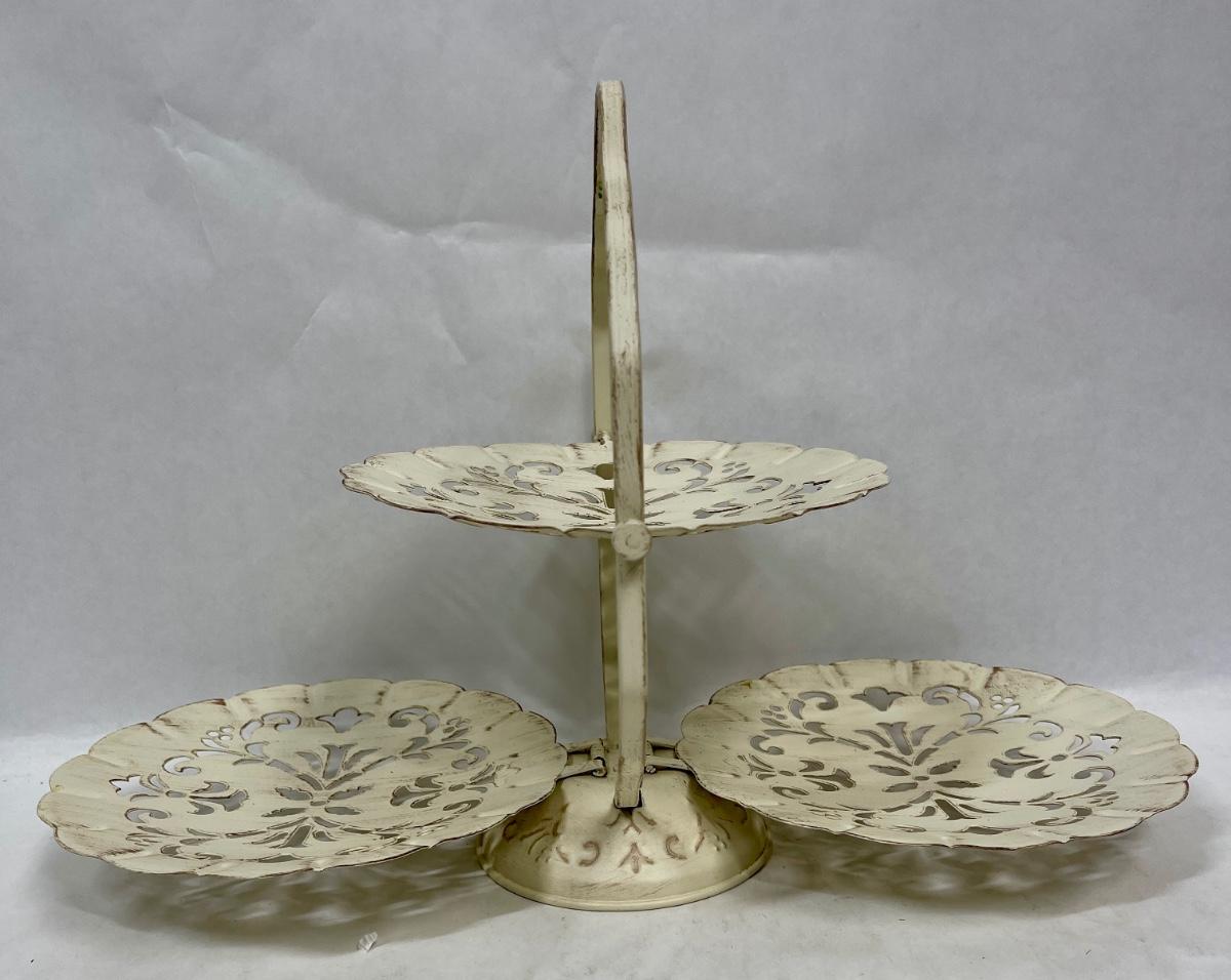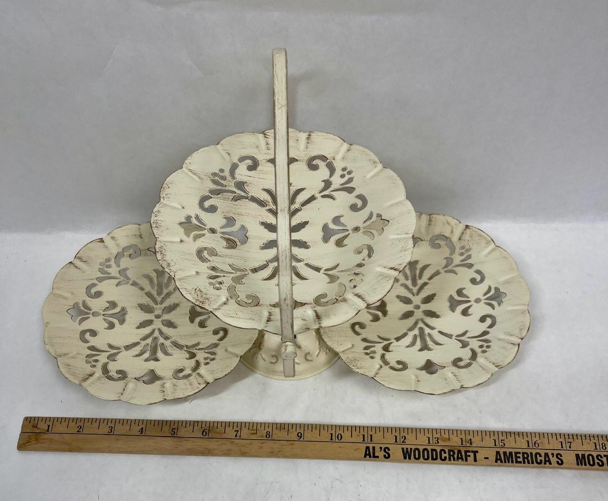 Painted Metal Three Tiered Collapsible Serving Tray with Handle