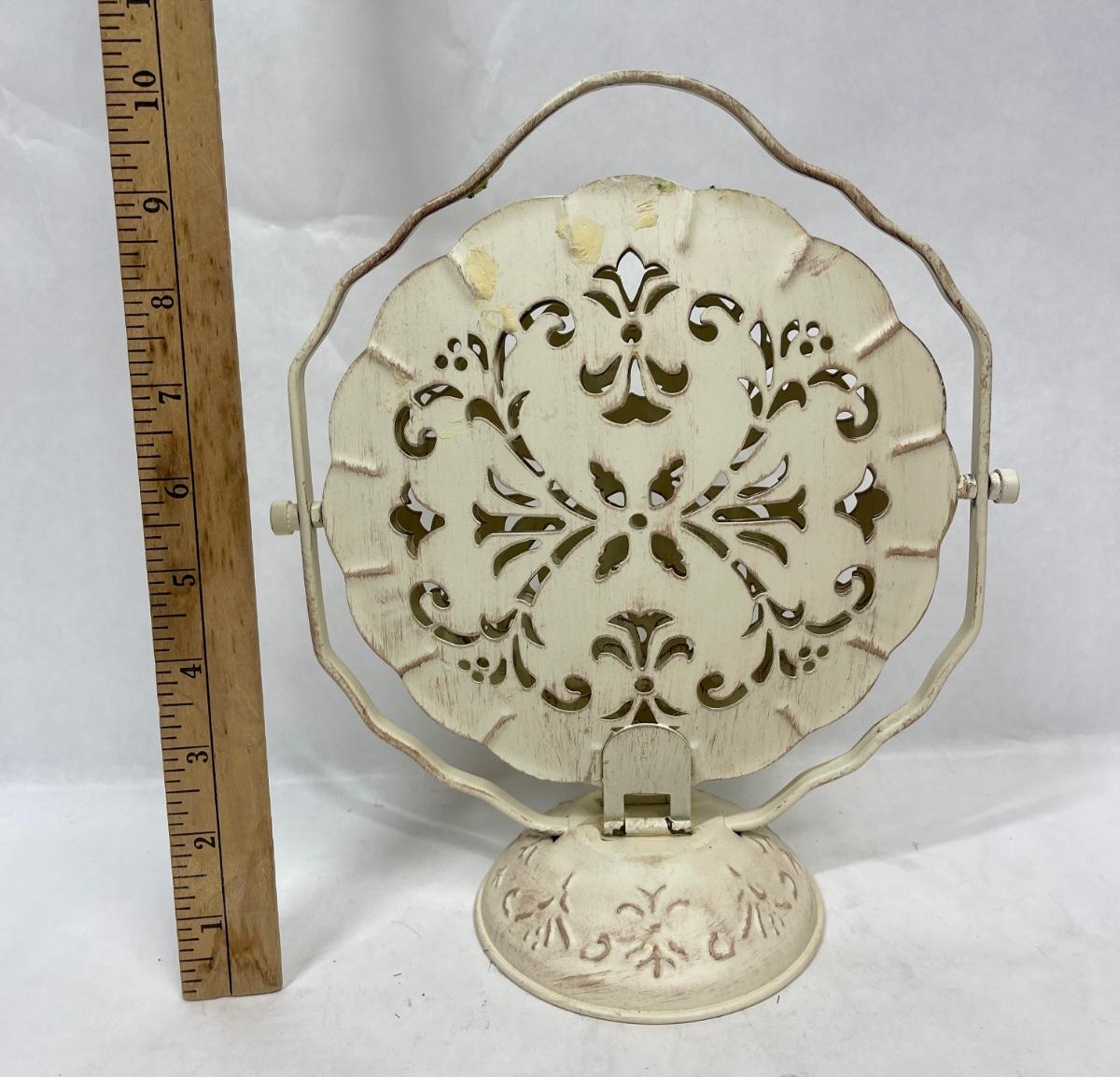 Very good condition. Approx. 10" tall when collapsed for storage, approx. 16" across when opened.