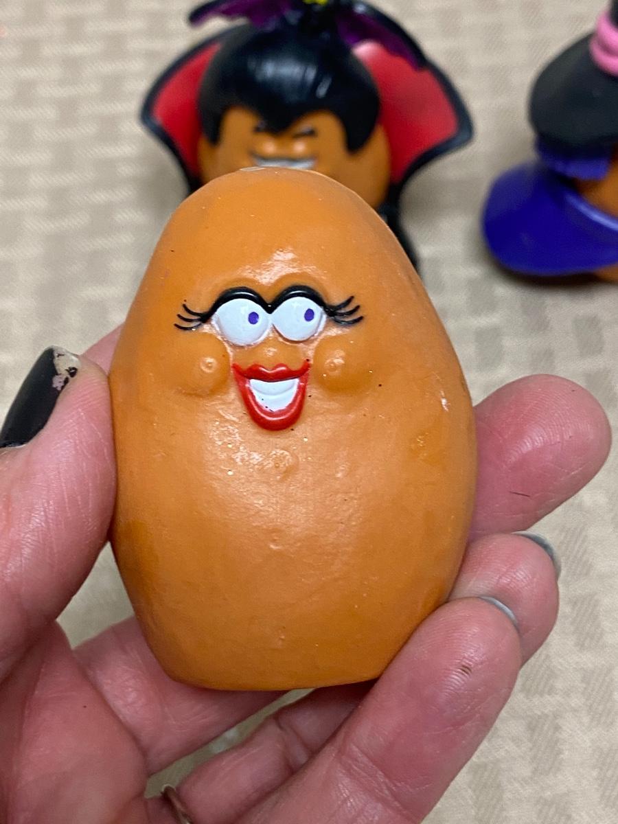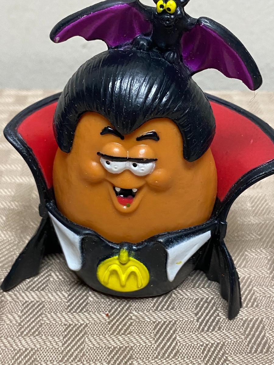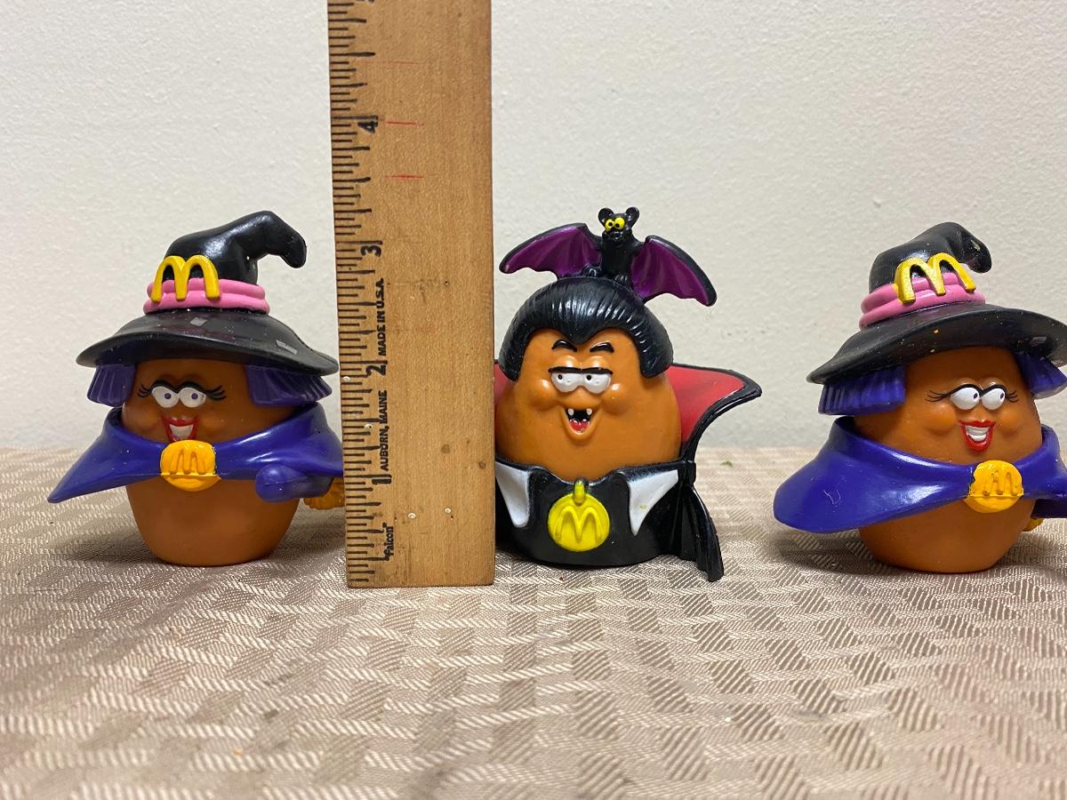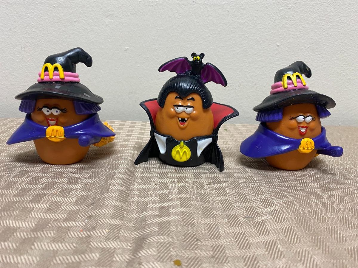 McDonalds Happy Meal Chicken Nugget Halloween Figures. Two witches, one vampire. Clothes and hats are removeable. Dated 1992.