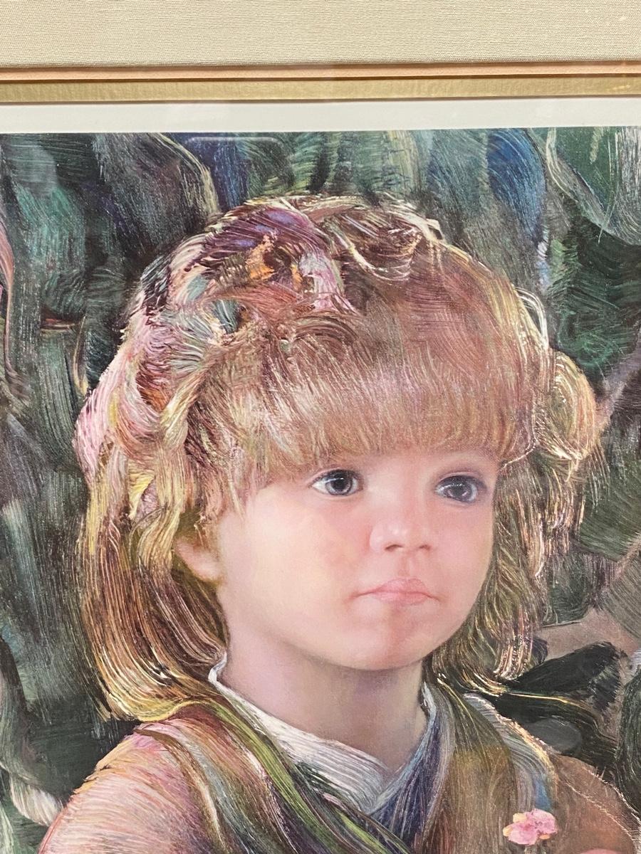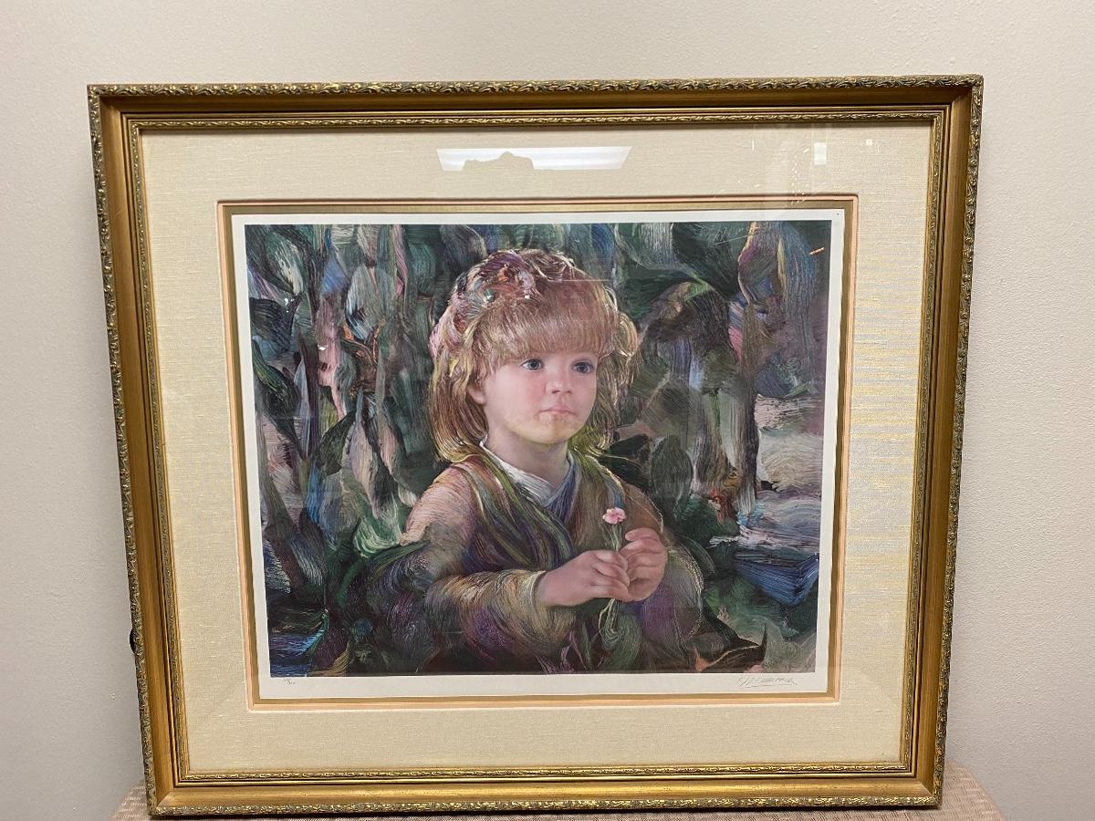Signed & Numbered Framed Lithograph Child with Flower Art. #199/300. About 28"x32" size.