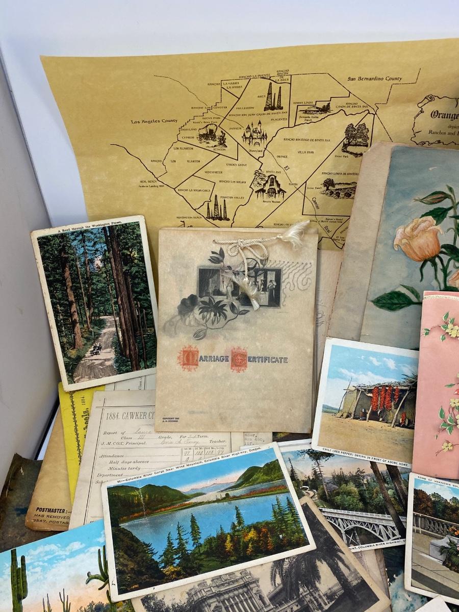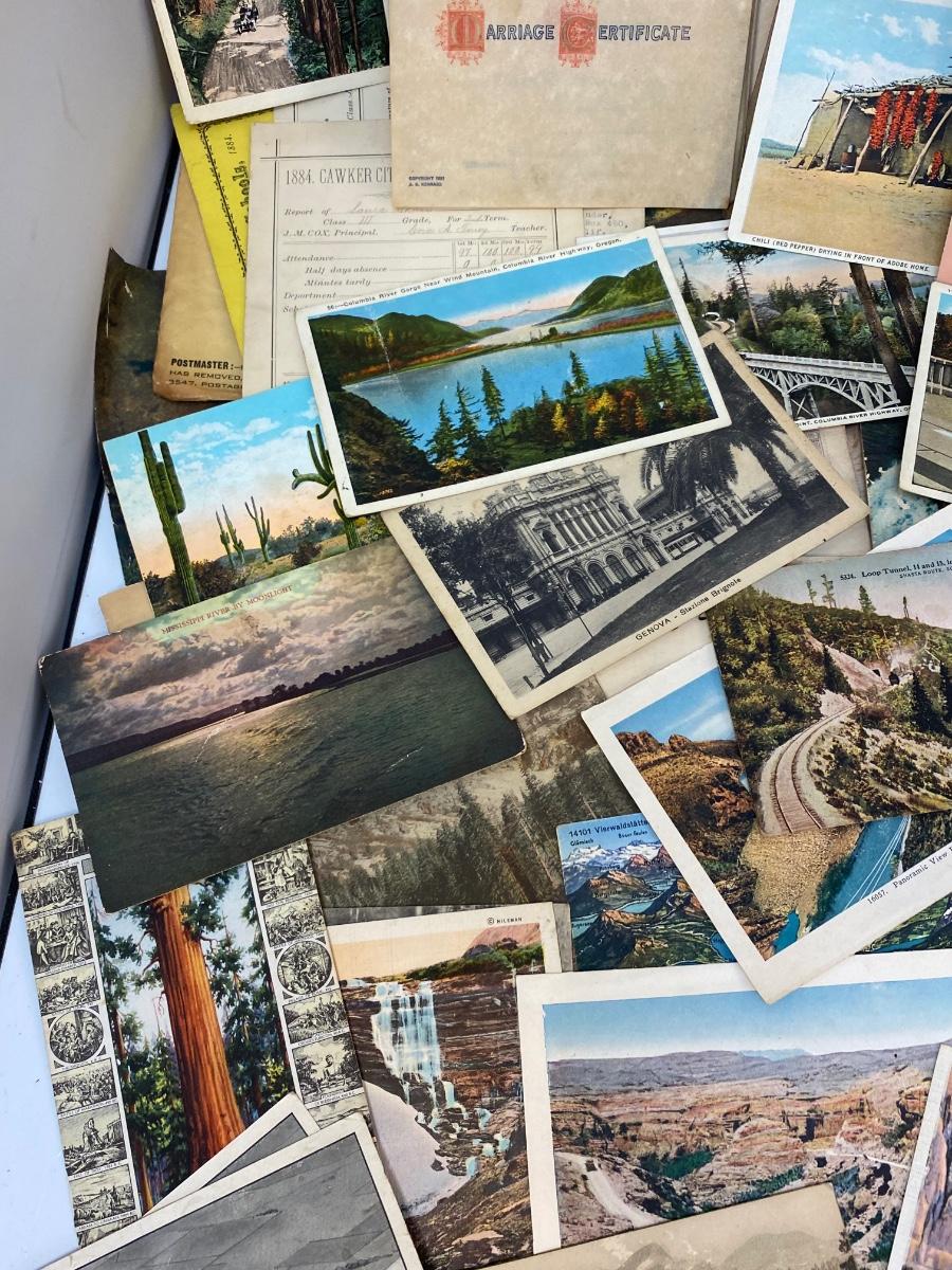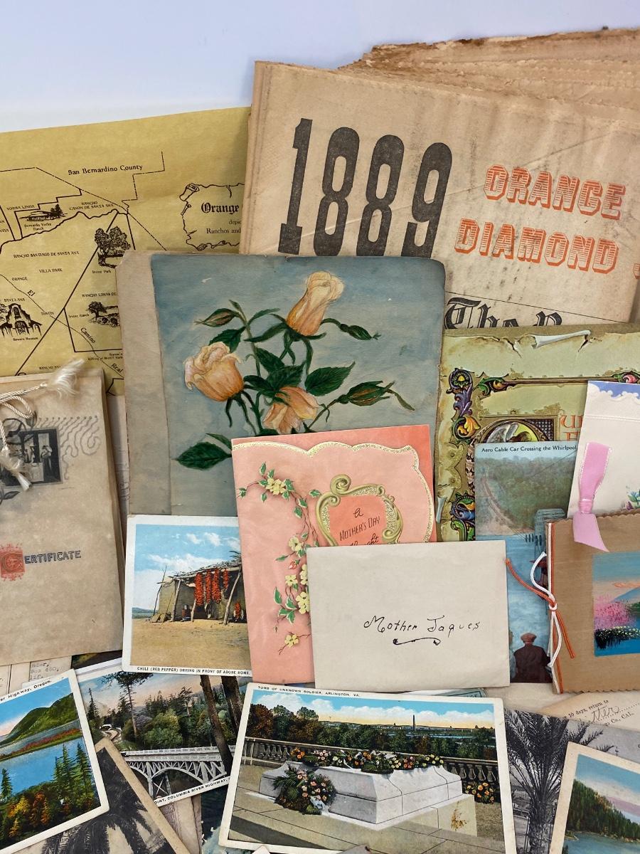 Huge Mixed Lot of Vintage Antique Post Cards Newspapers Notes & More