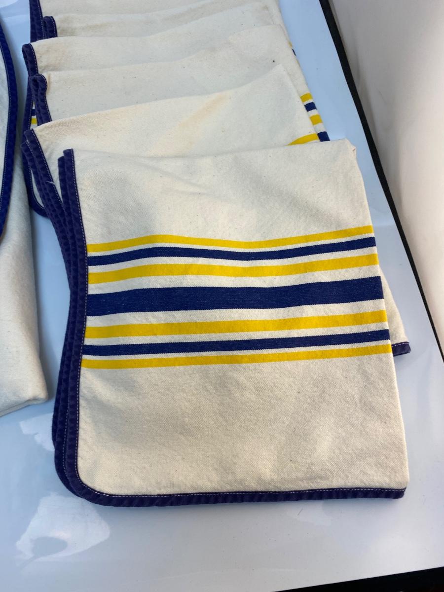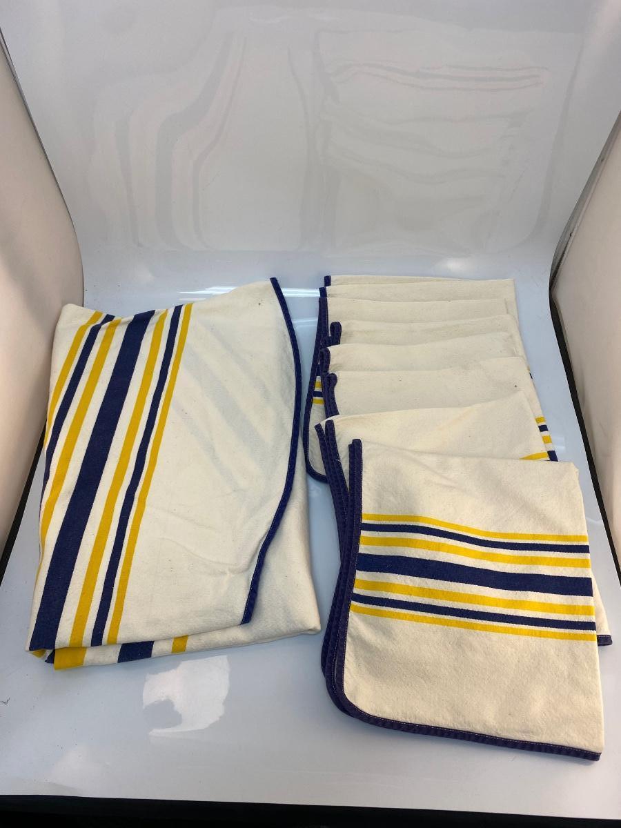 Vintage Yellow & Blue Striped Heavyweight Linen Tablecloth and Napkin Set Linge Basque France