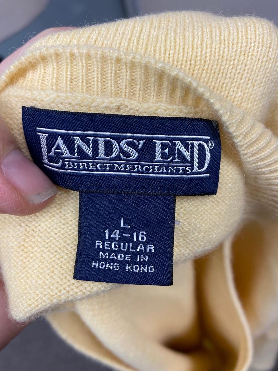 100% Cashmere Pale Yellow Land's End Pullover Sweater Large 14/16. In good condition.