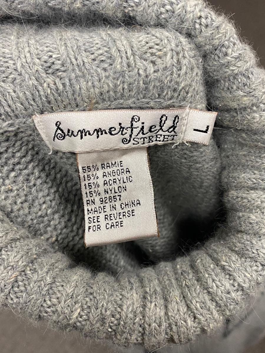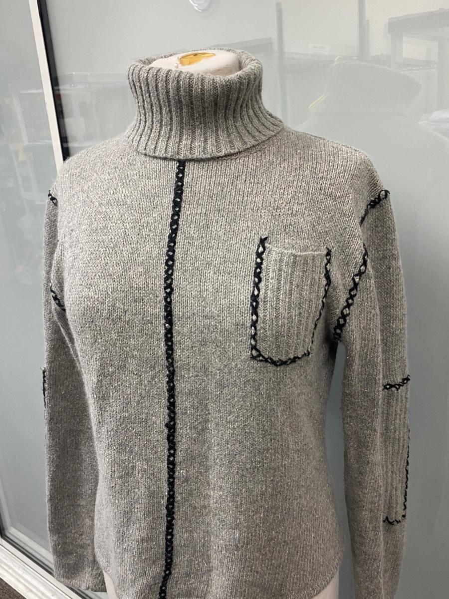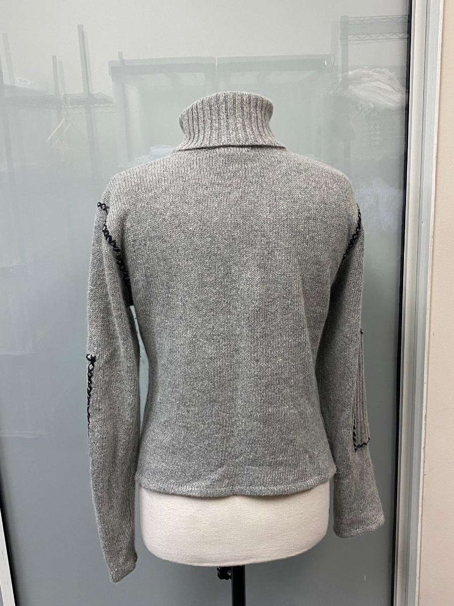There is no significant damage to the sweater and is in overall good wearable condition. There is a small stain on the sleeve, check pictures for more details.