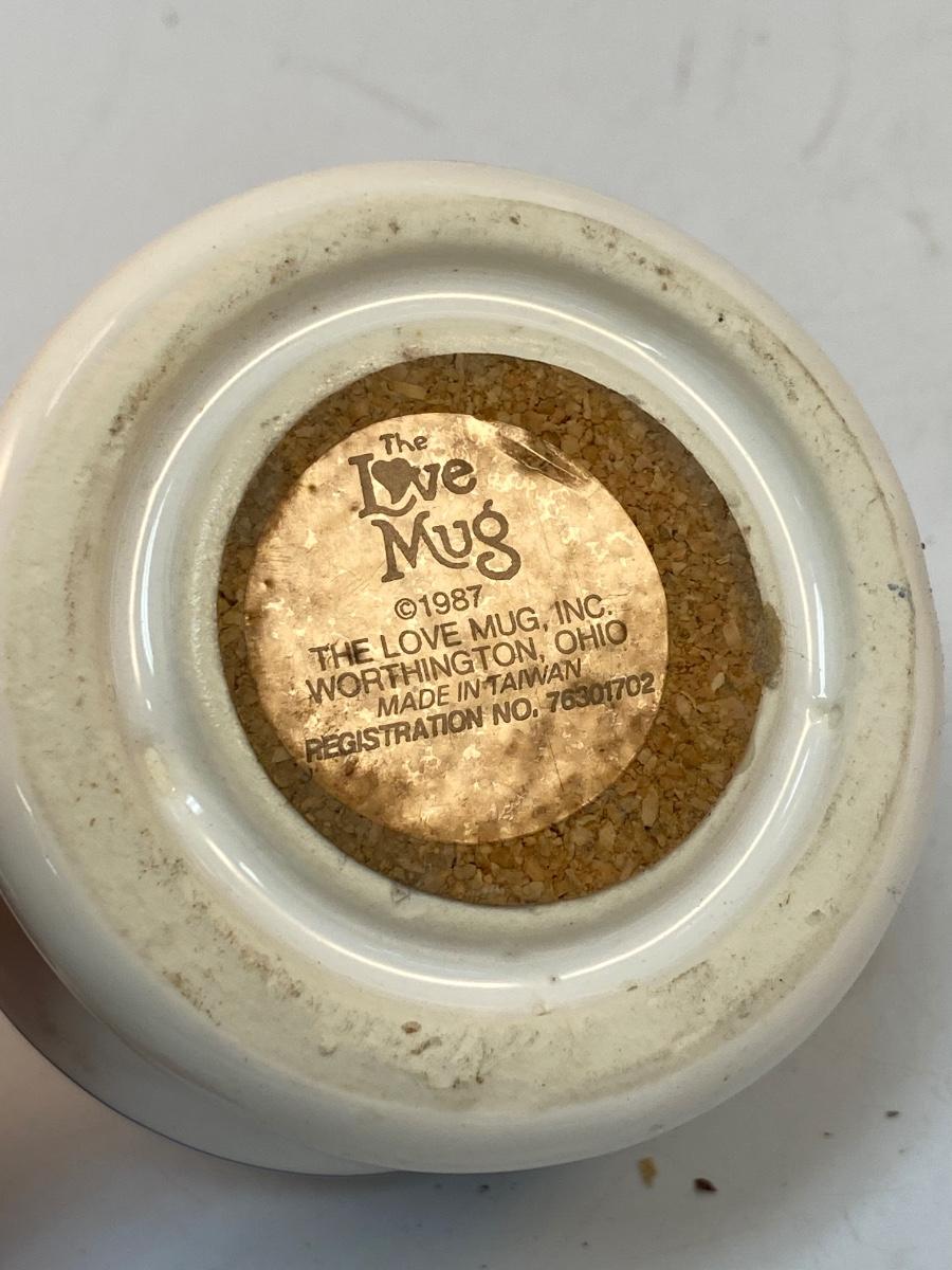 There is no significant cracks or chips to the love mug and is in overall good collectible or displayable condition. Check pictures for more details and for sizing.