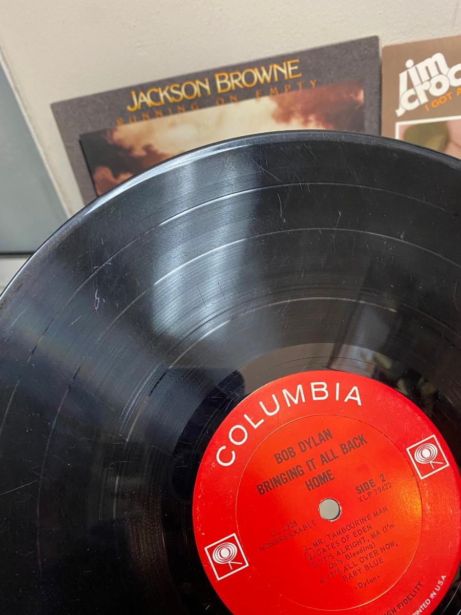 Lot of 4 Vintage Vinyl Record Album Jackson Browne Jim Croce Bob Dylan No Cover. in previous played condition. Both Bob Dylan albums are missing their covers. Untested. lots of light scratches, no major scratches or warp.