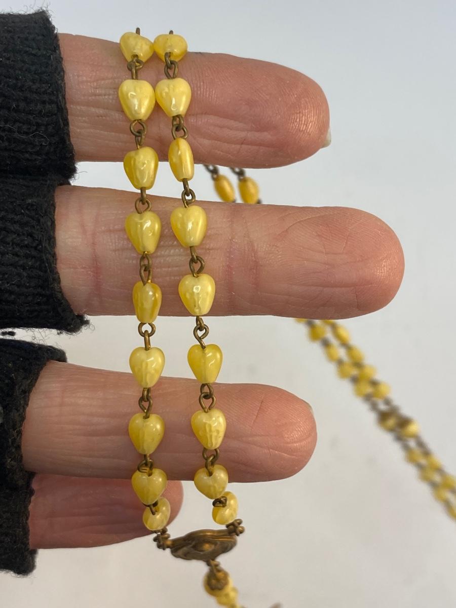 Vintage Pale Yellow Heart Shaped Bead Catholic Rosary