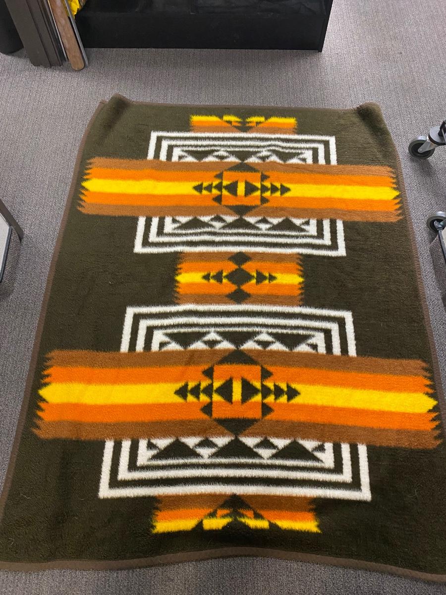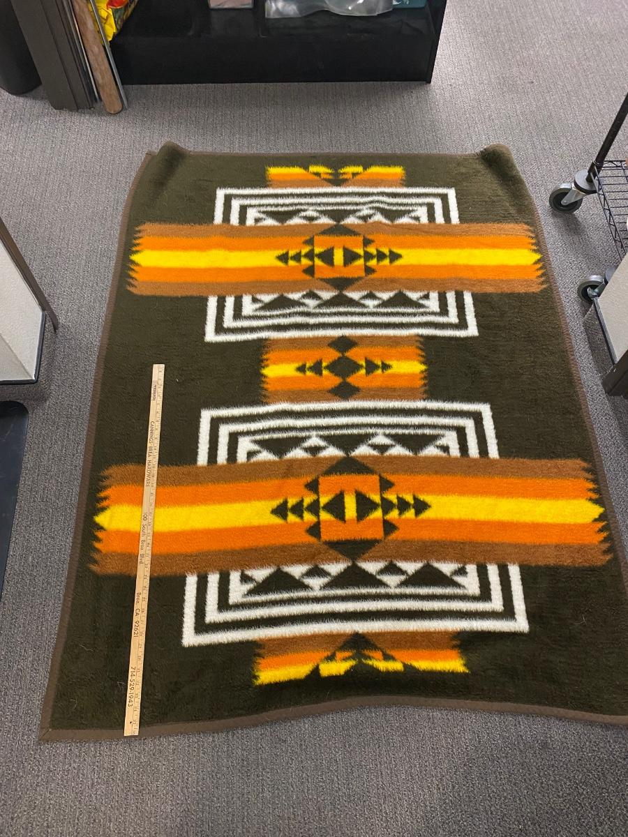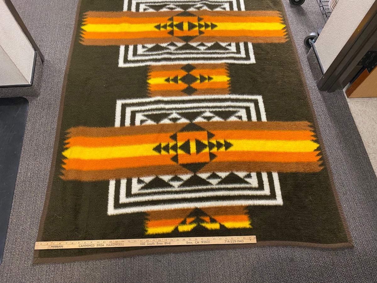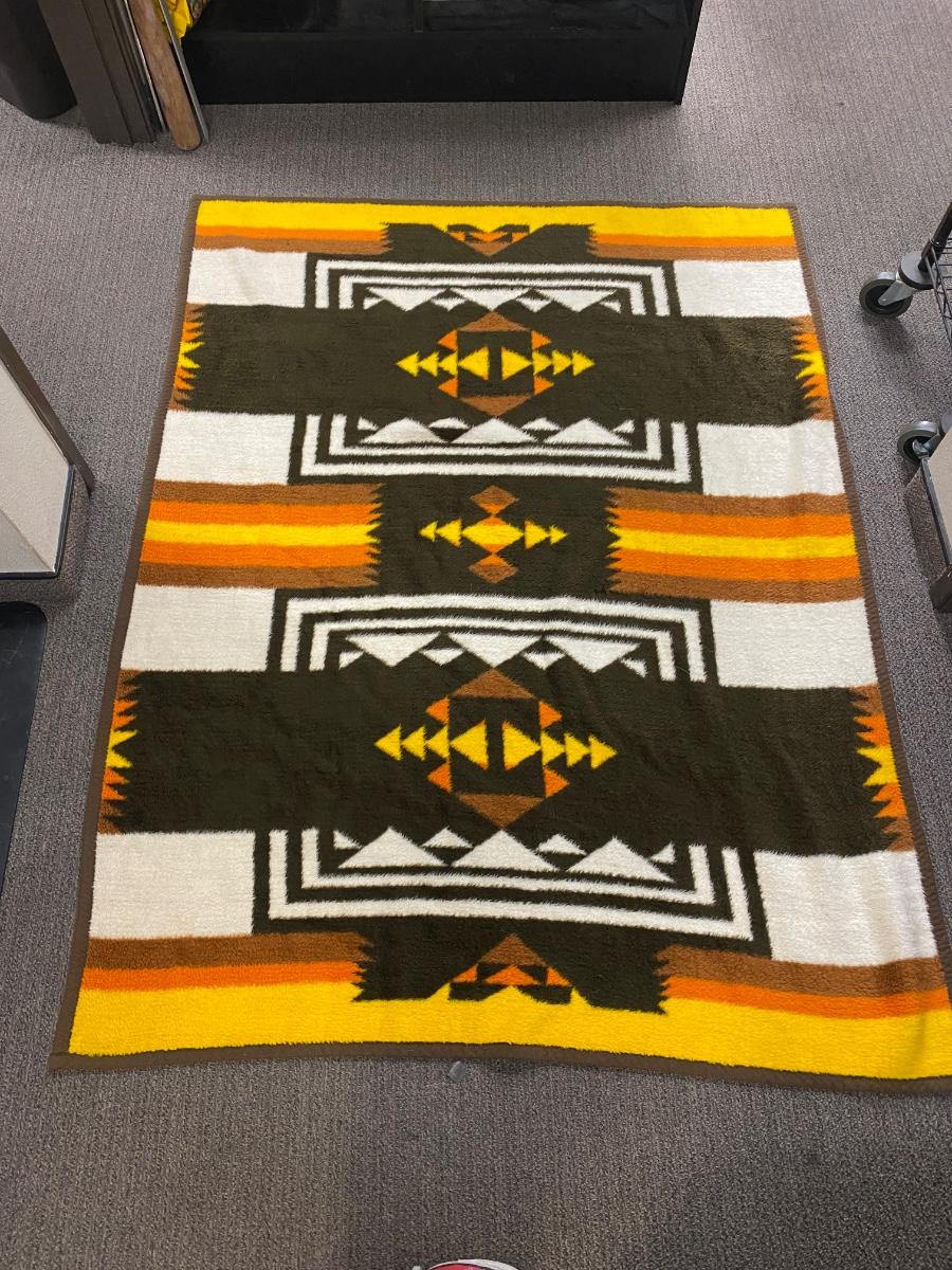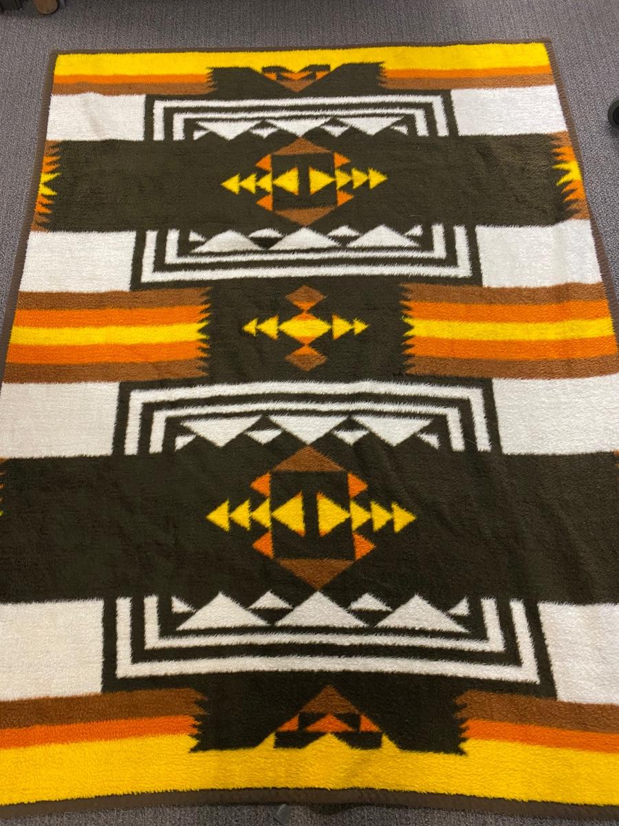 Retro Brown Orange Yellow Reversible Fleece Southwestern Design Throw Lap Blanket. In good condition, soft fleece. Looks good on either side. About 4'x6' size.