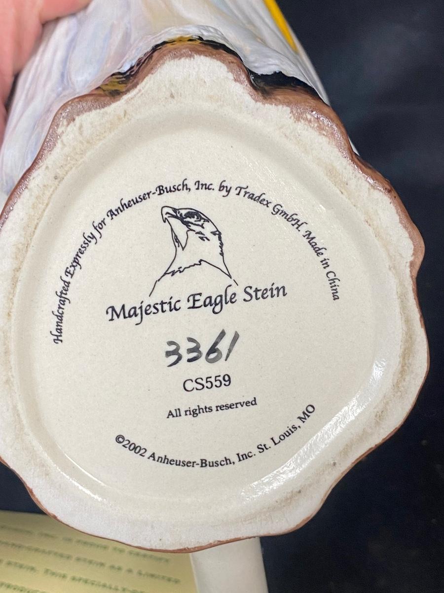 Anheuser Busch Majestic Bald Eagle Patriotic Lidded Beer Stein. In good condition. Numbered on the bottom.