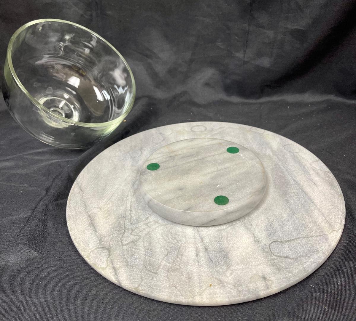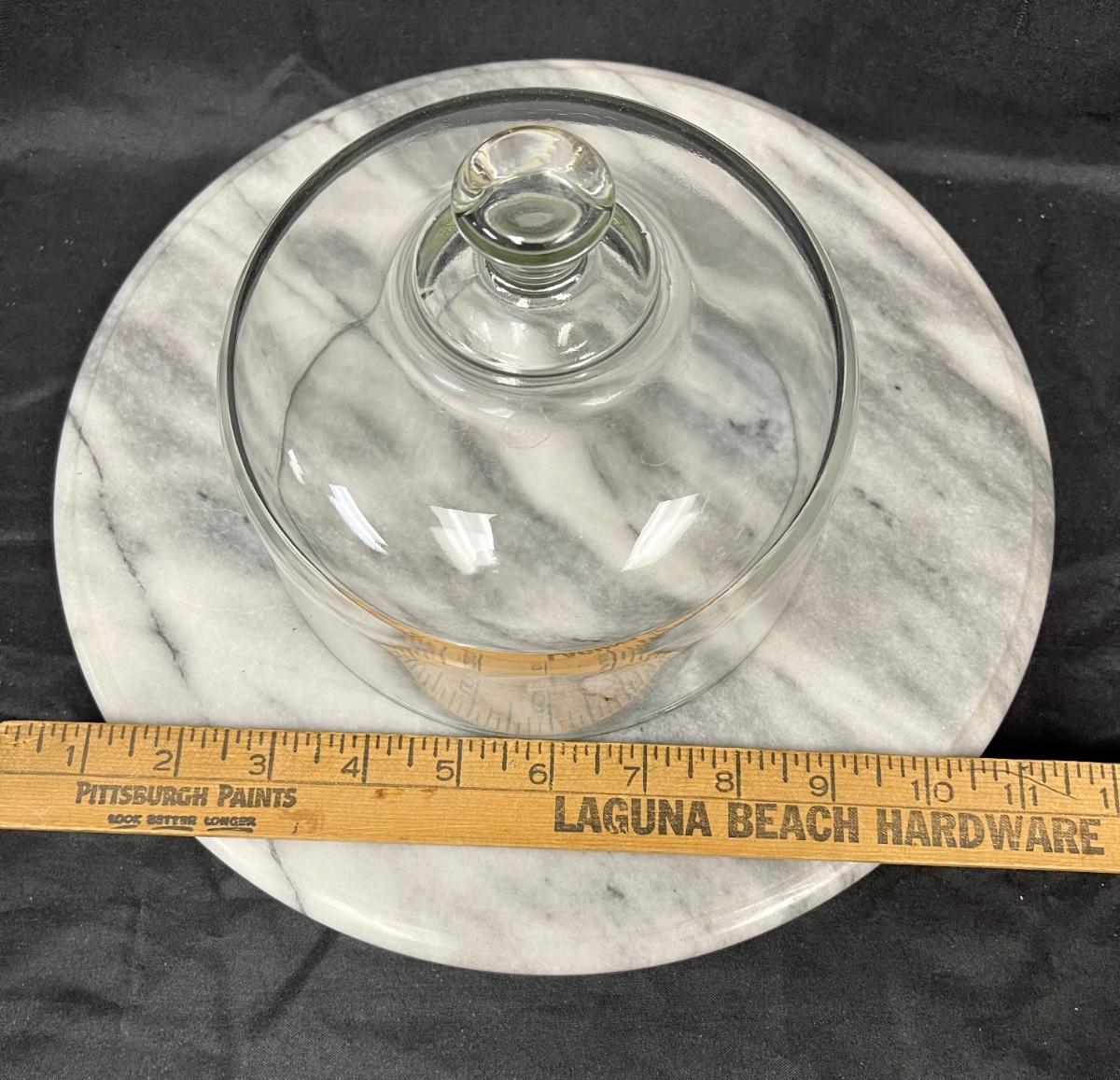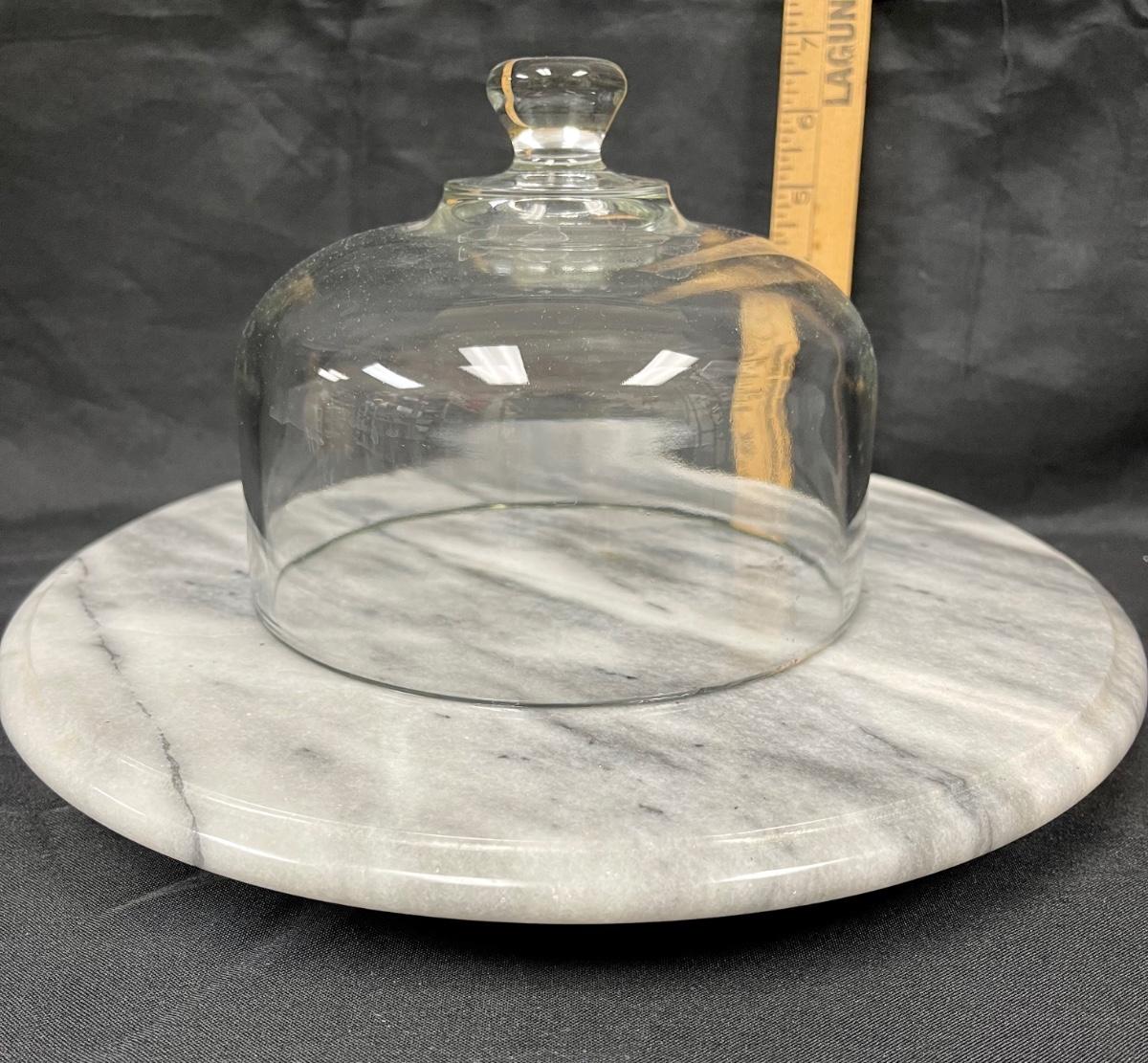 Stone Pedestal Tray and Glass Dome Cheese Dessert Cover Lid. Good condition.