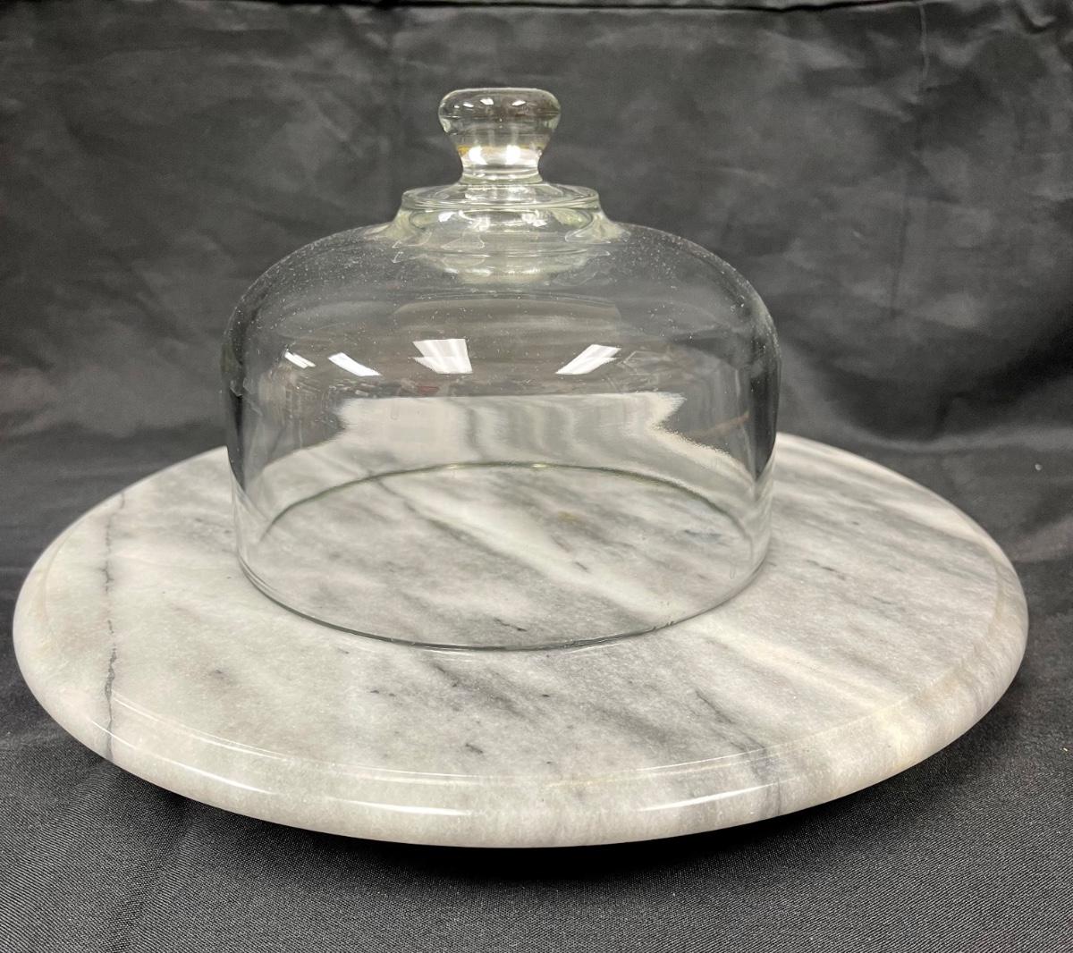 Stone Pedestal Tray and Glass Dome Cheese Dessert Cover Lid