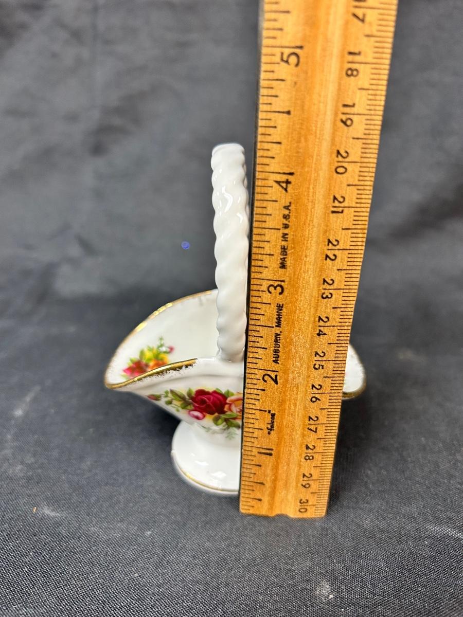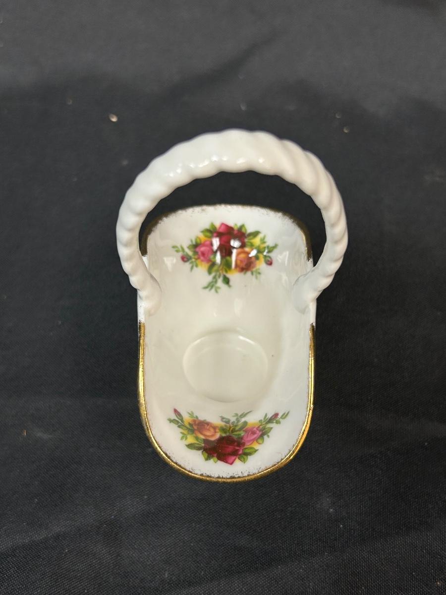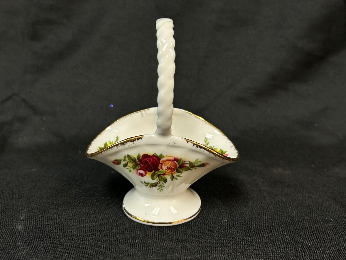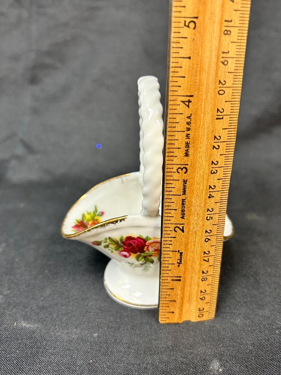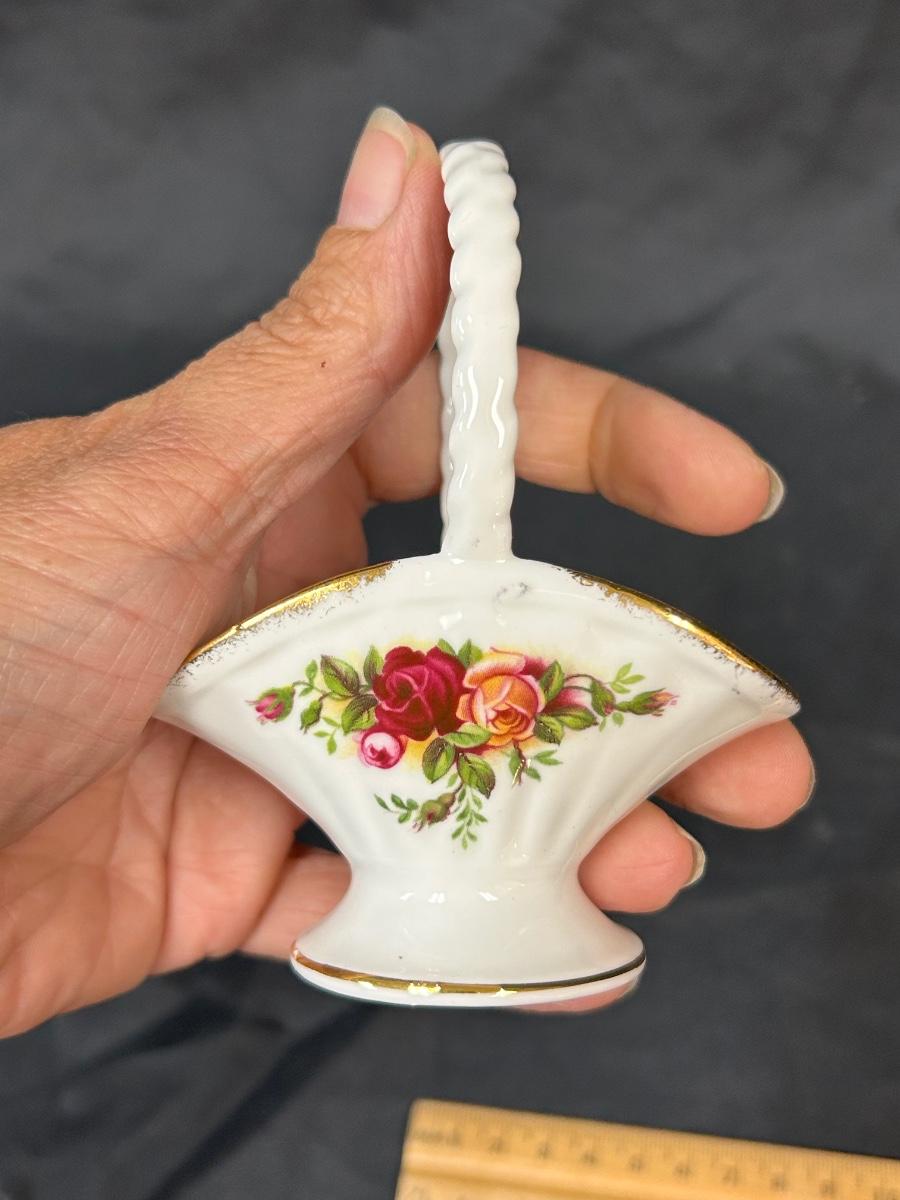 Royal Albert Old Country Roses Bone China Basket Shaped Figurine. In good condition. Small, about 4" size.