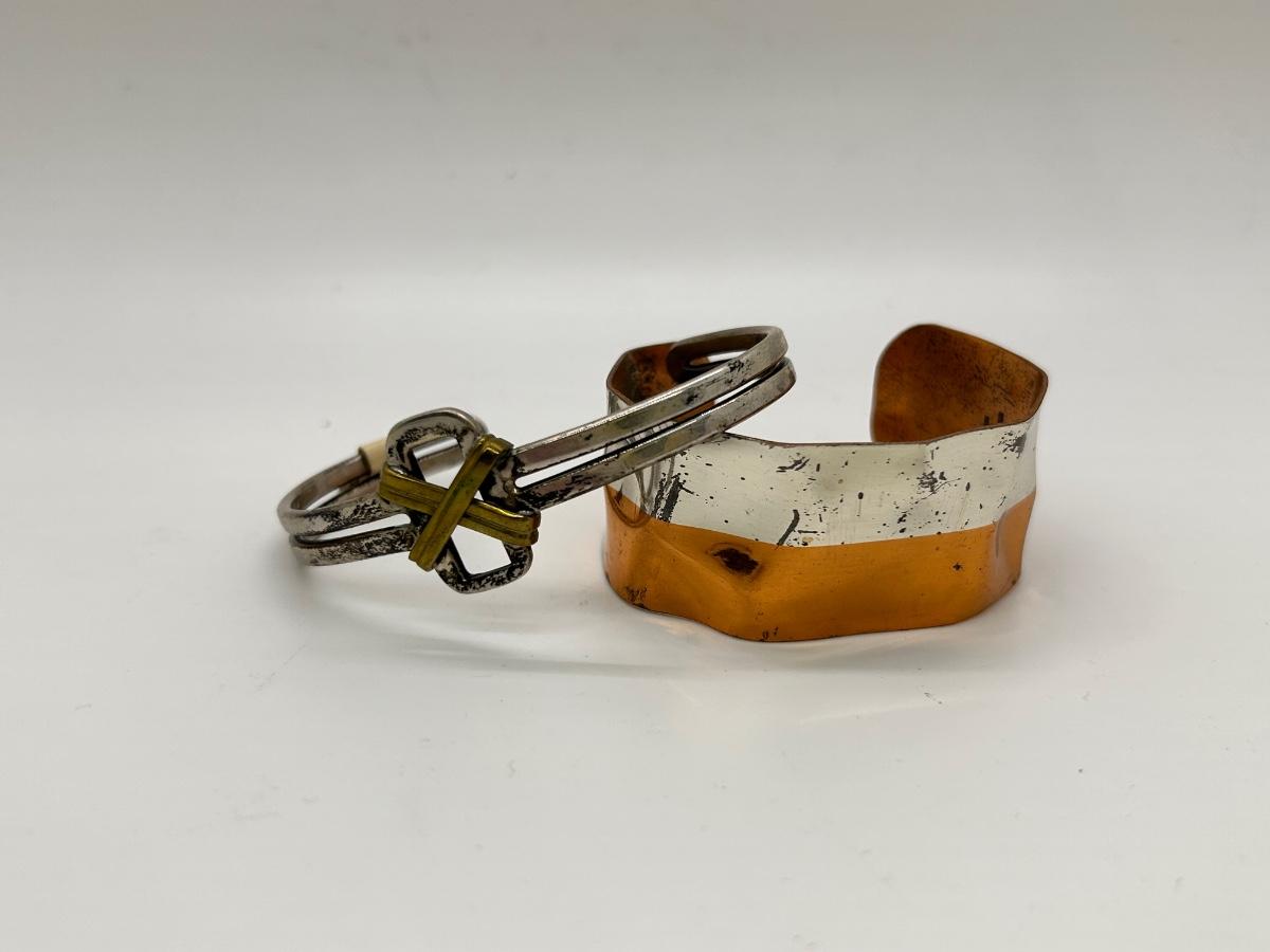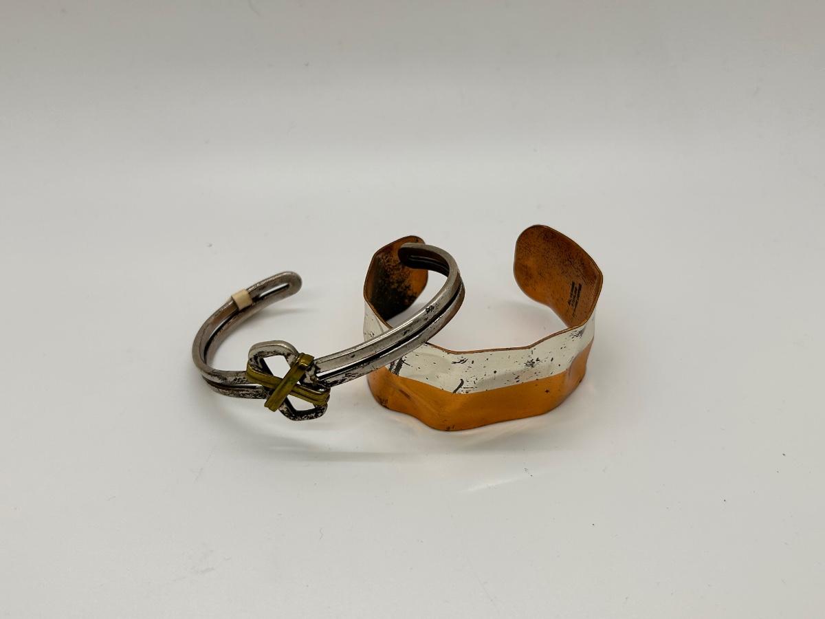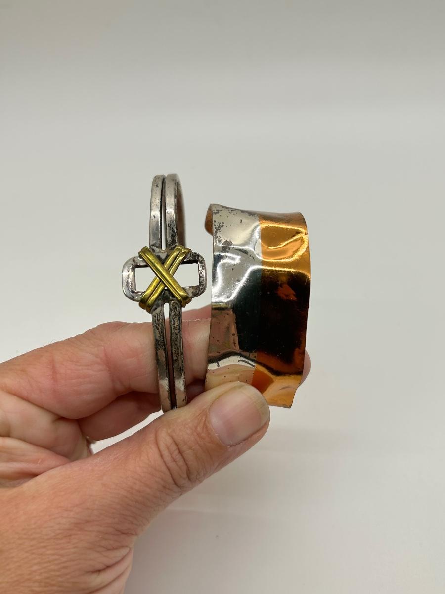 Pair of Metal Cuff Style Bracelets Silver Tone Sterling and Copper