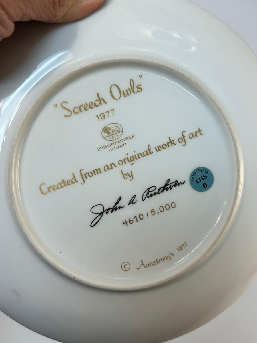1977 Screech Owls Limited Edition Signed and Numbered Collector Plate. In good condition.