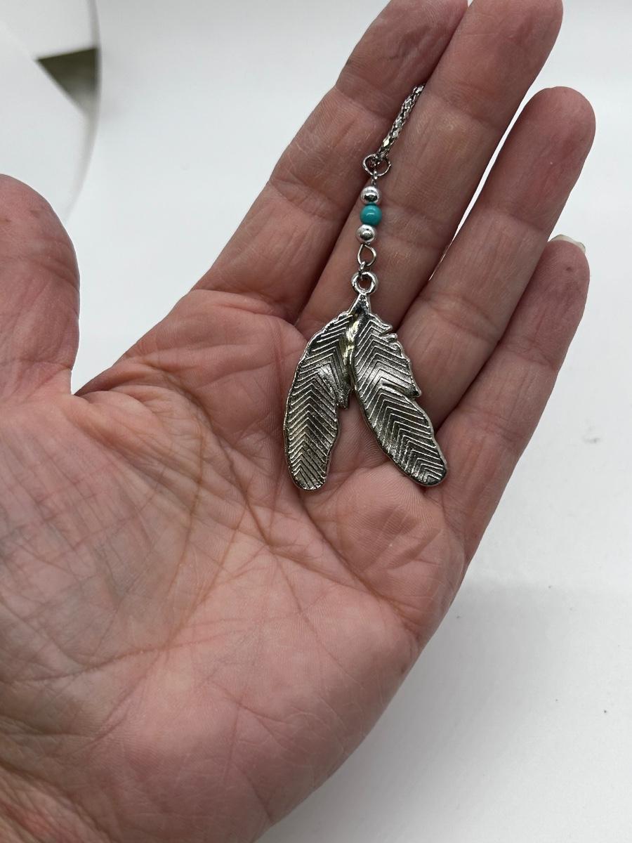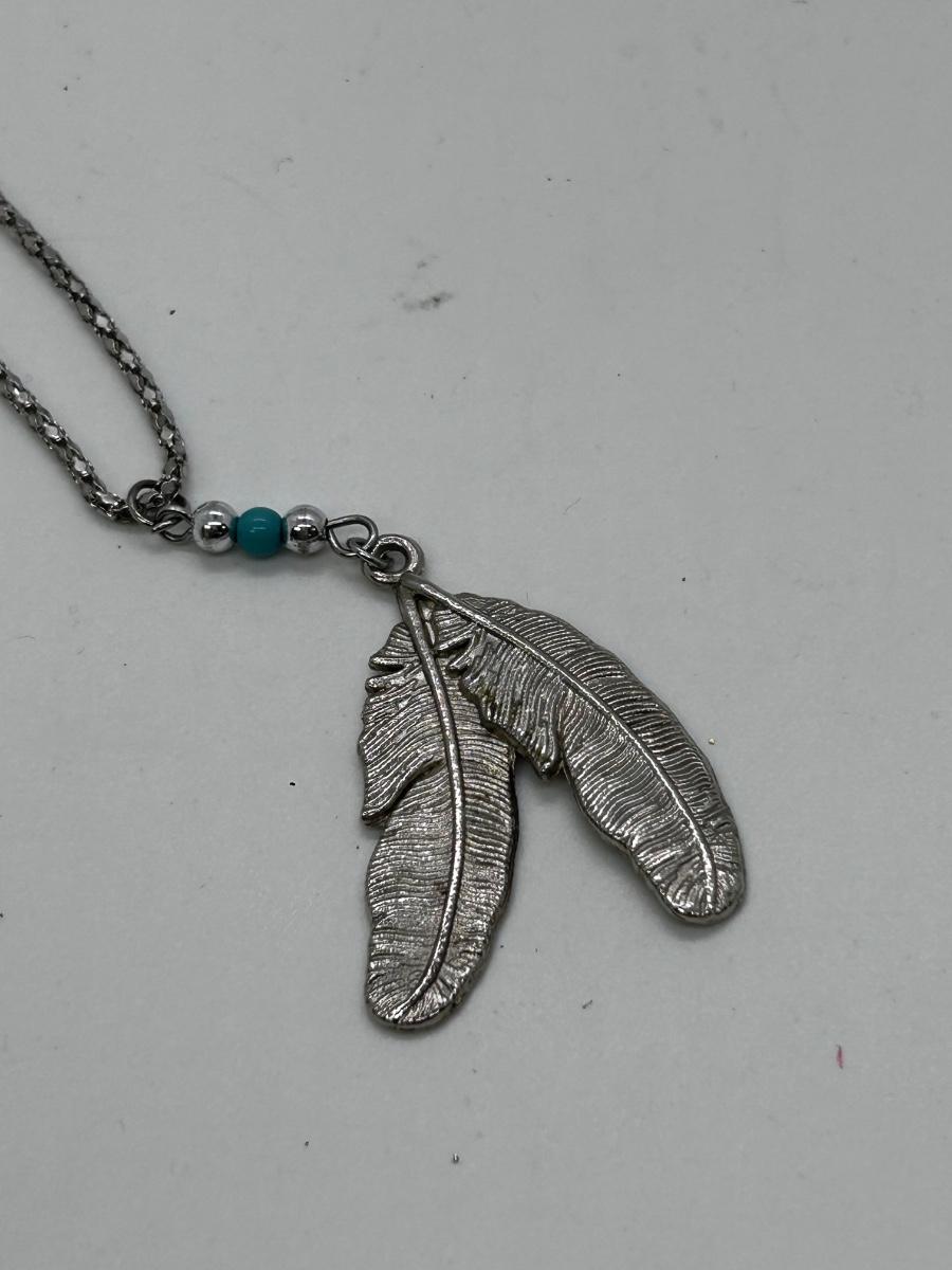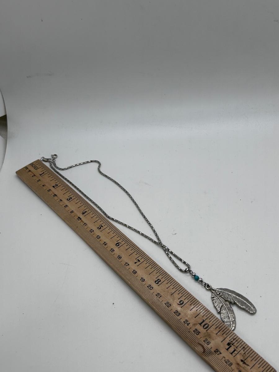 Silver Tone Southwestern Boho Feather Pendant Charm Necklace. In good condition. No sterling marks found.