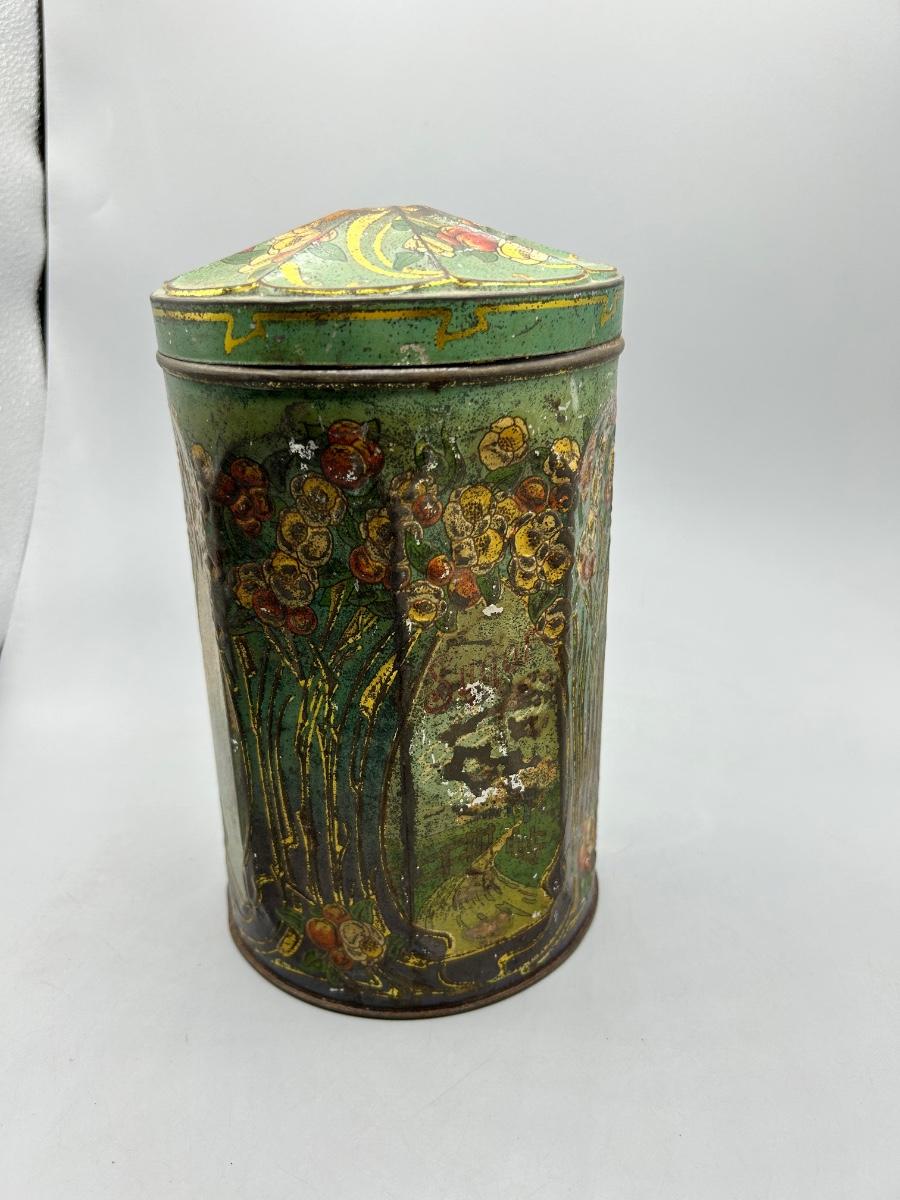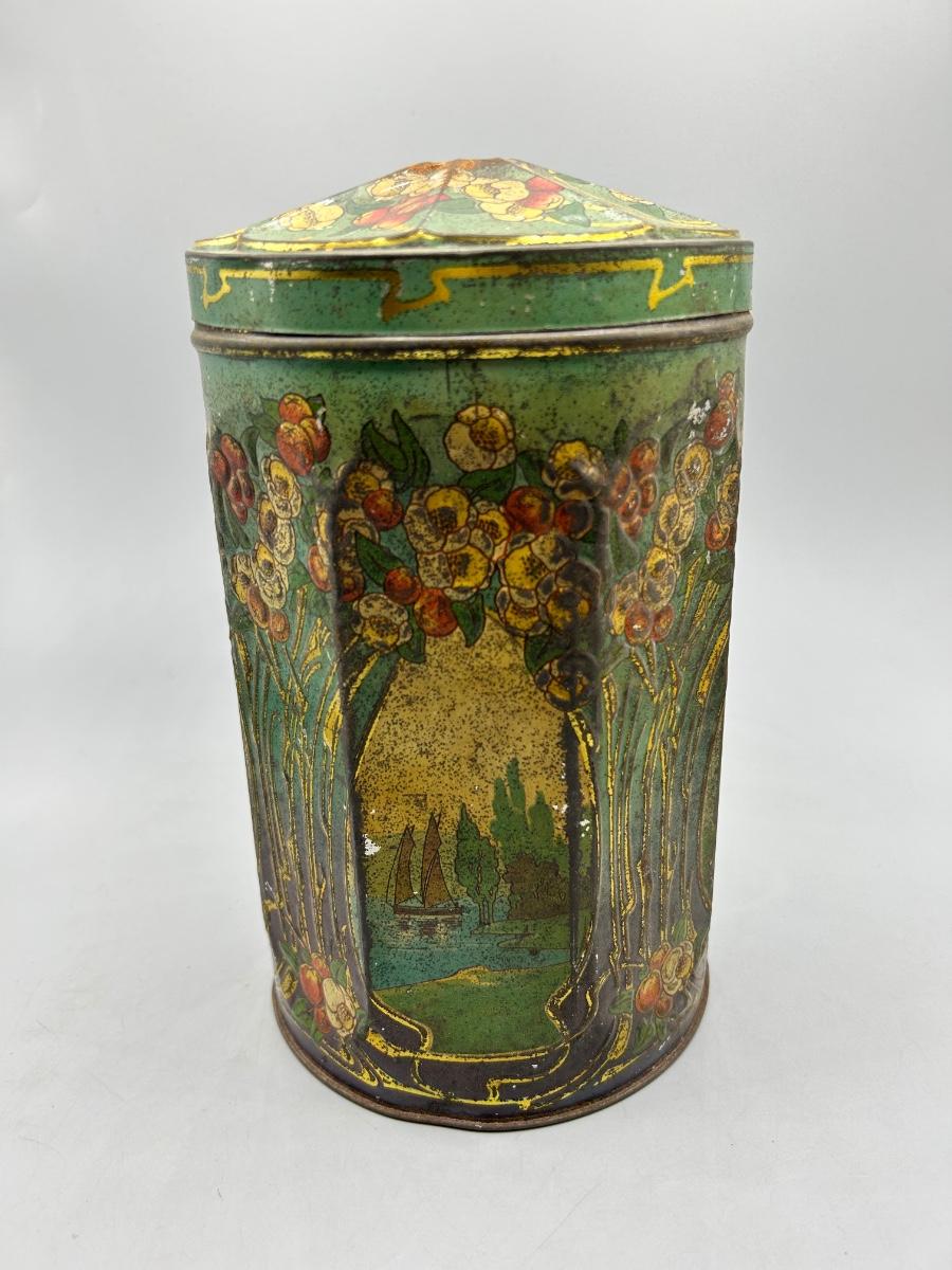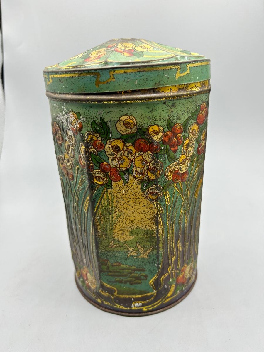 Vintage Art Nouveau Deco Pattern Tin Sugar Canister