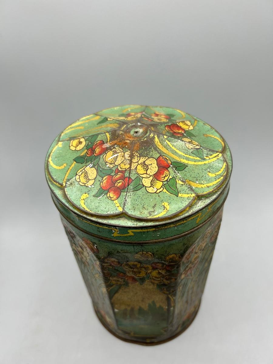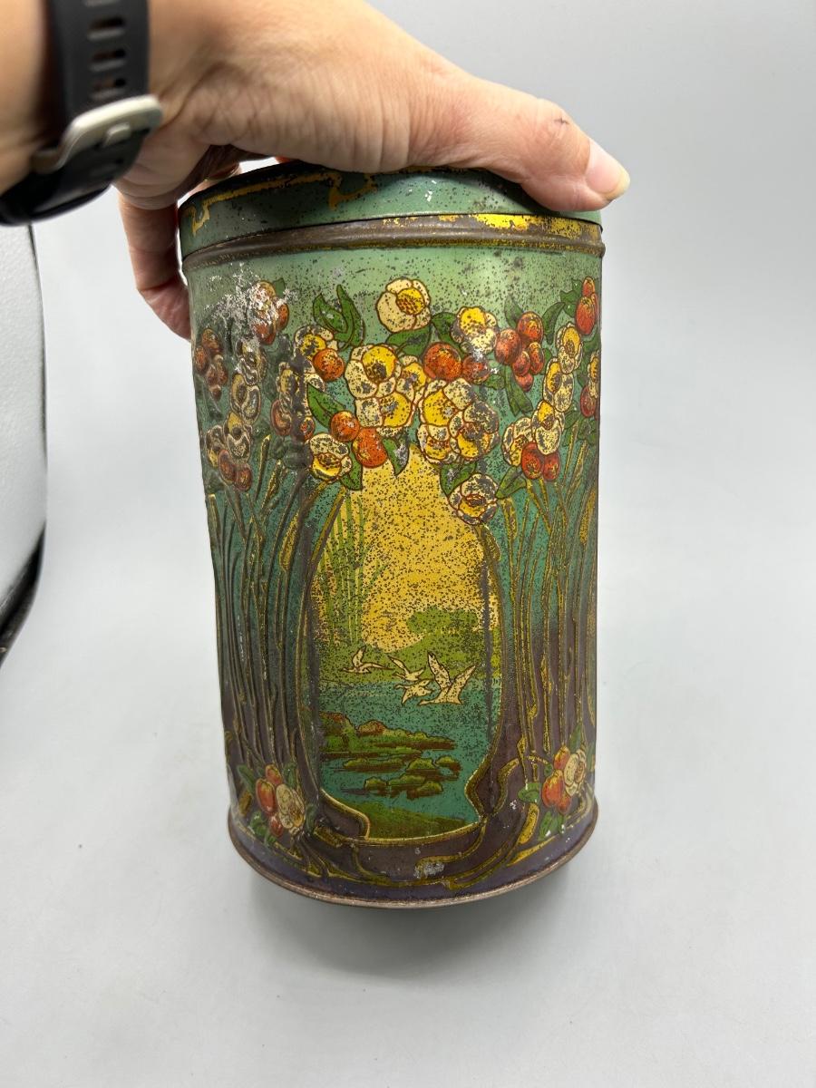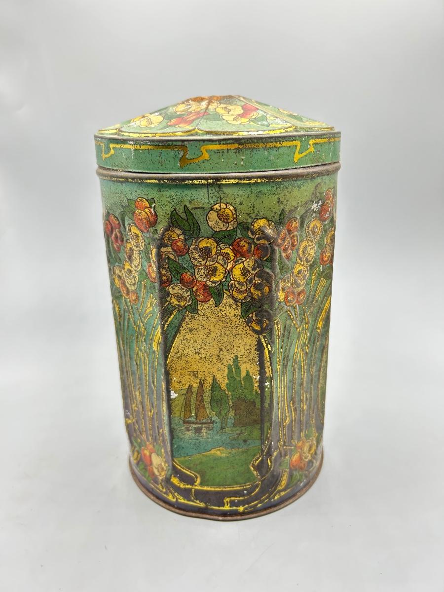 Vintage Art Nouveau Deco Pattern Tin Sugar Canister