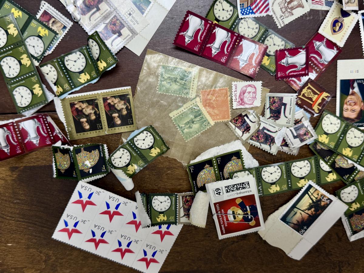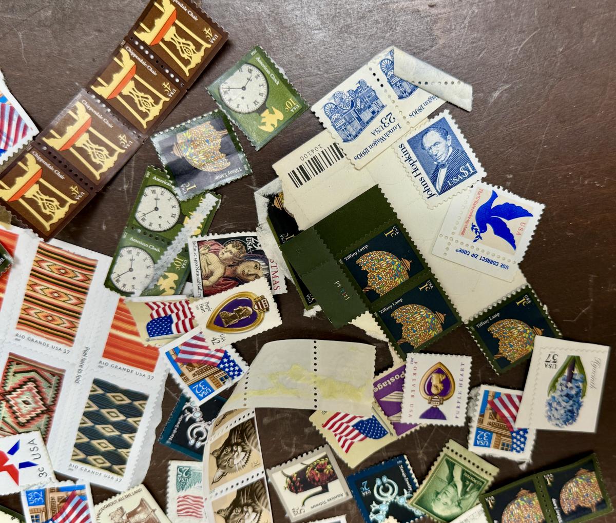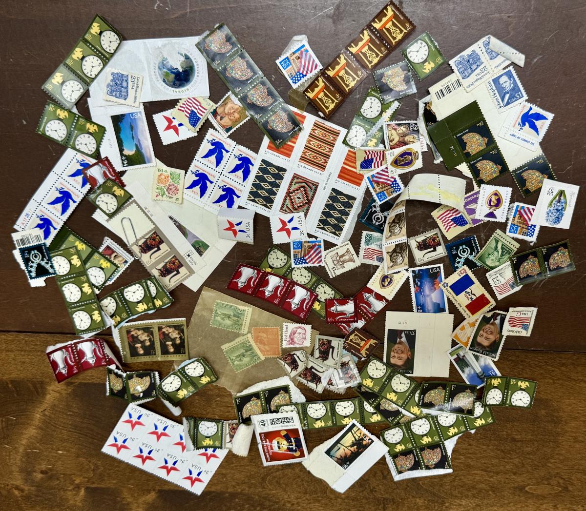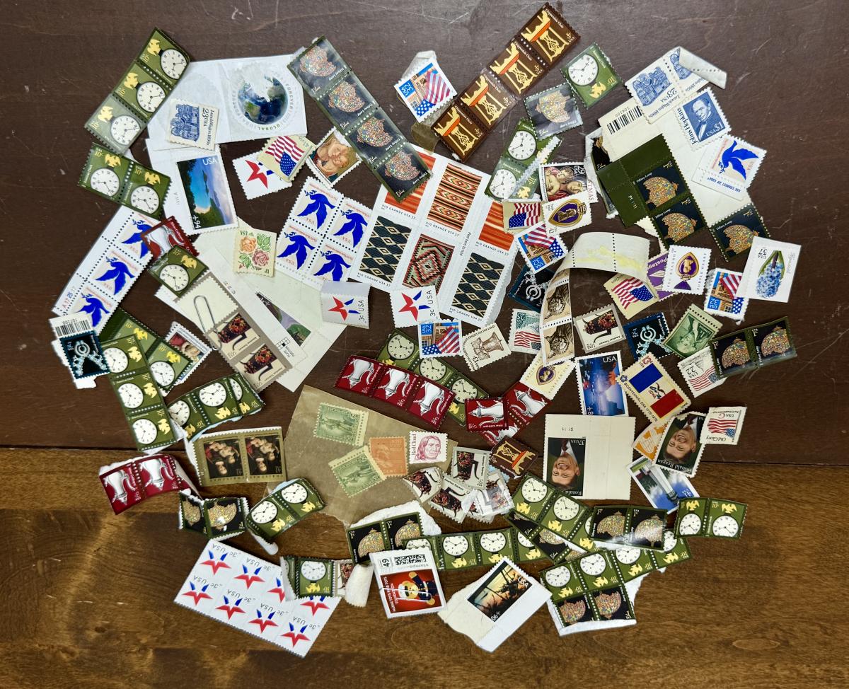 The lot varies in quality - some have be lifted of a surface and don't have adhesive for sticking, some are individual stamps with adhesive and some are multiples of stamps with adhesive. Stamp face values are mixed, as well.
