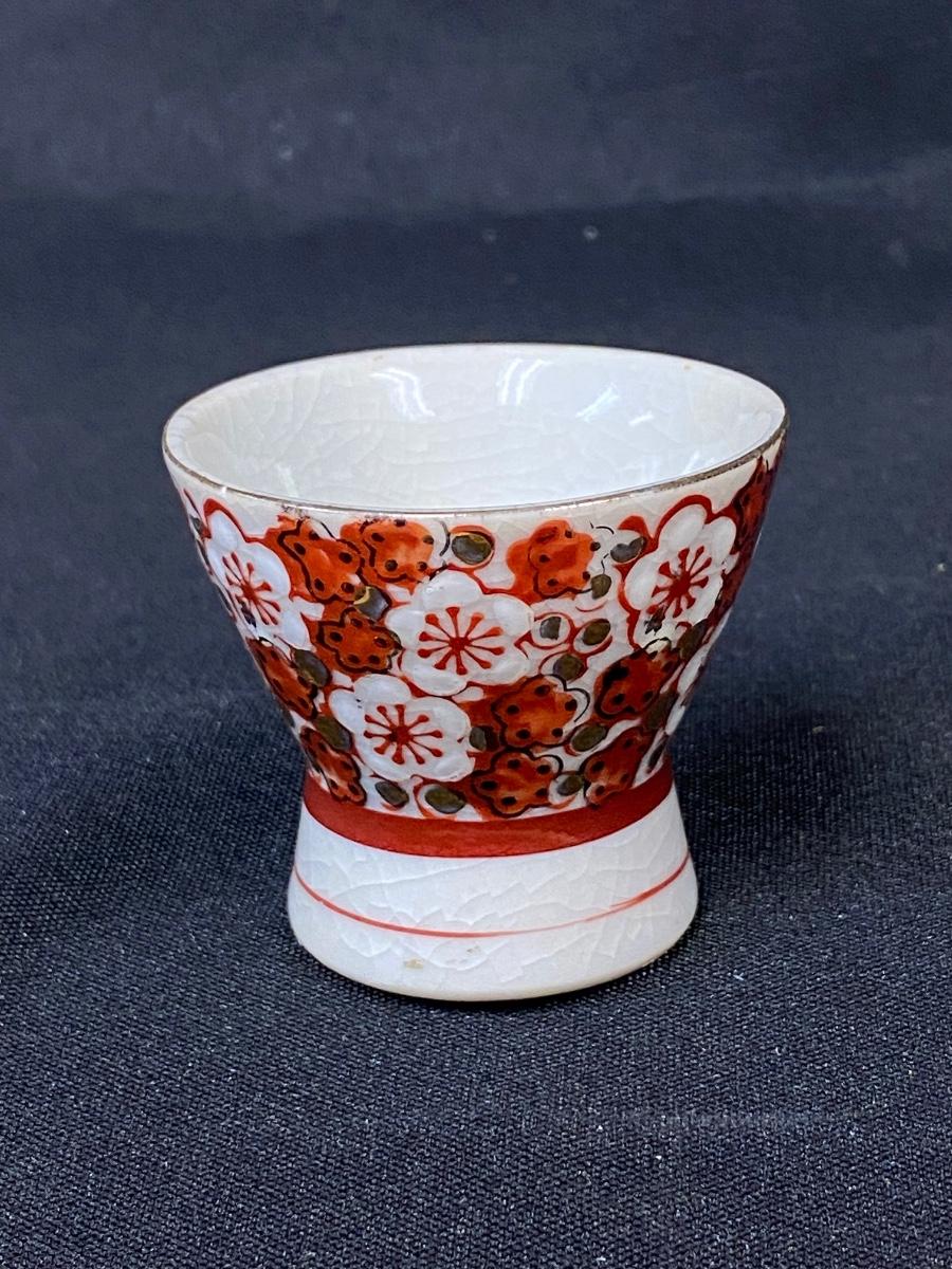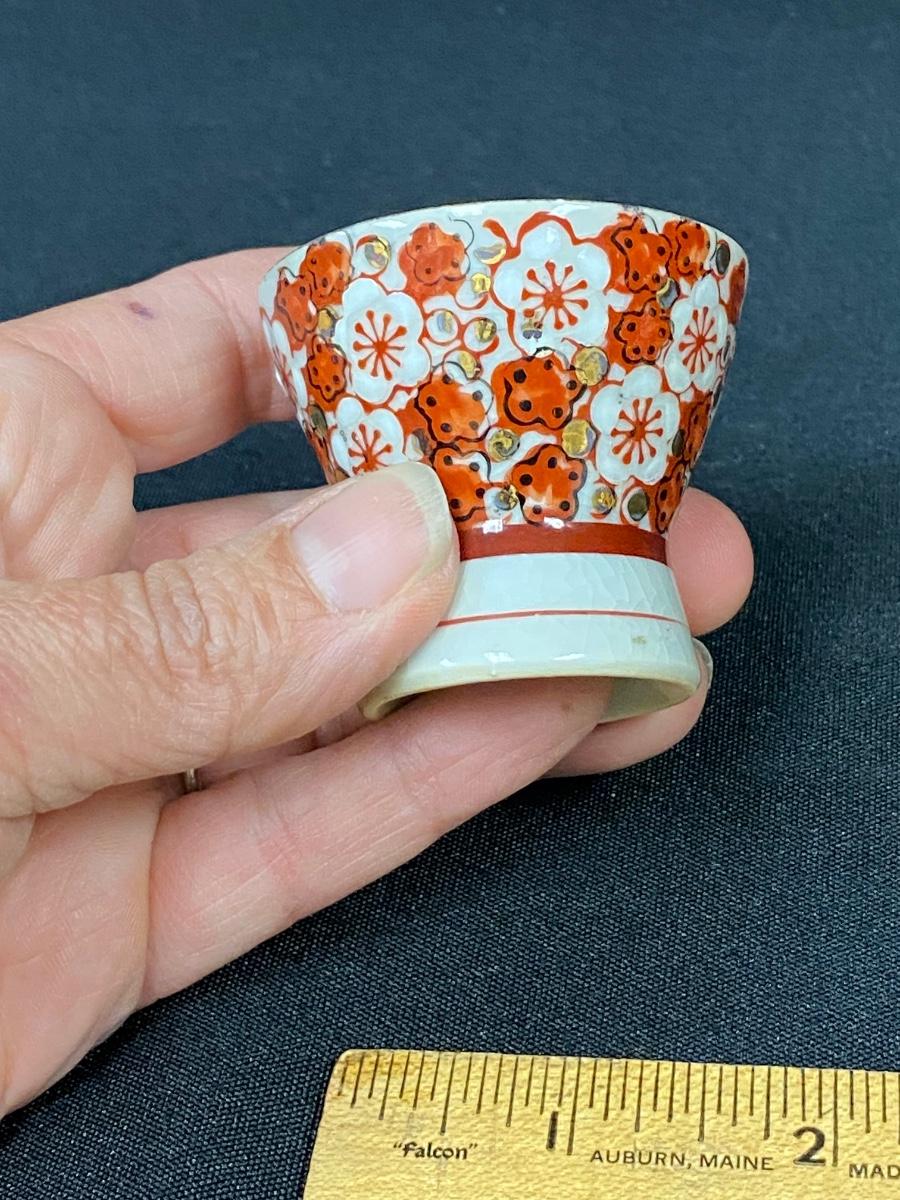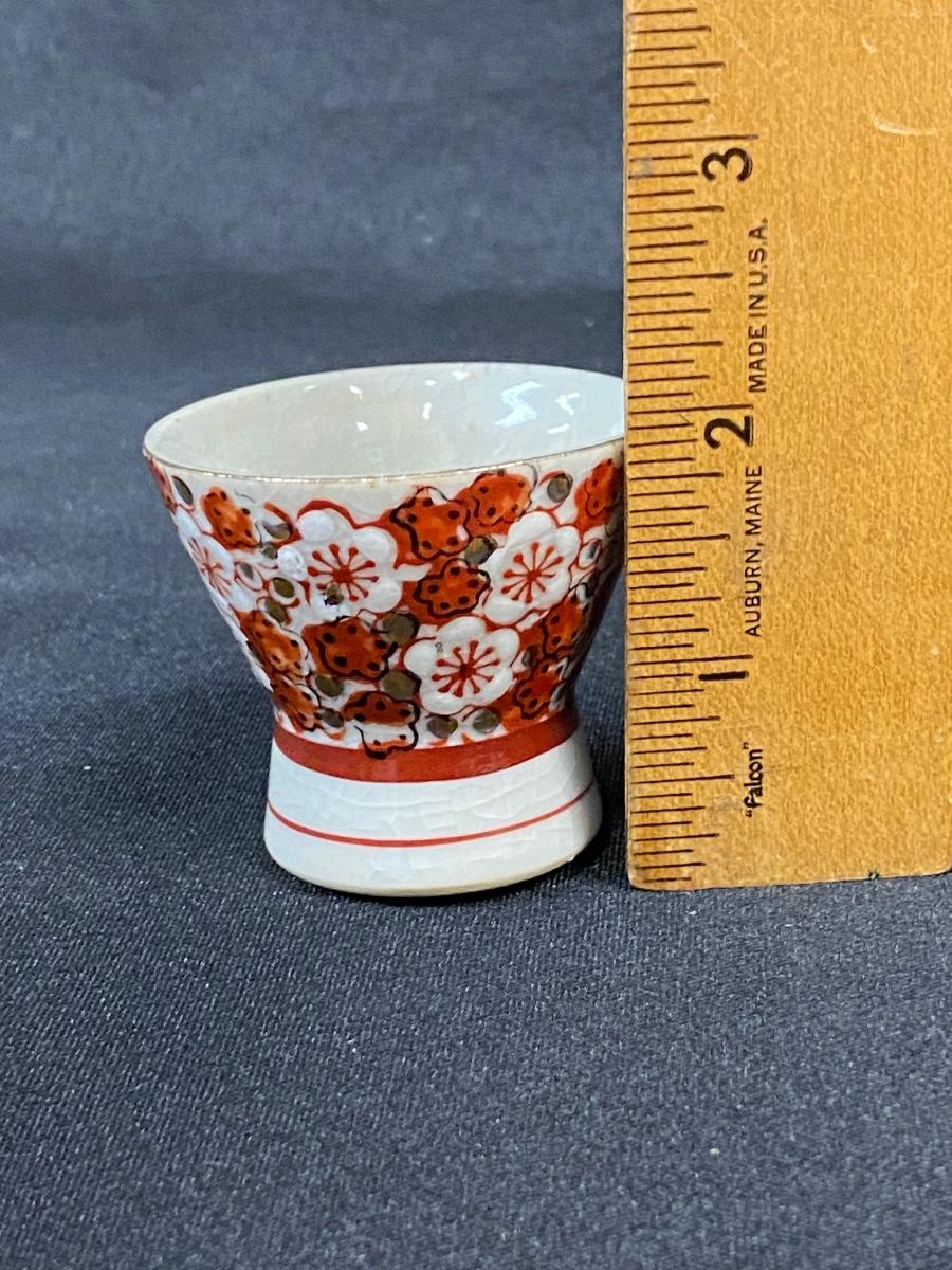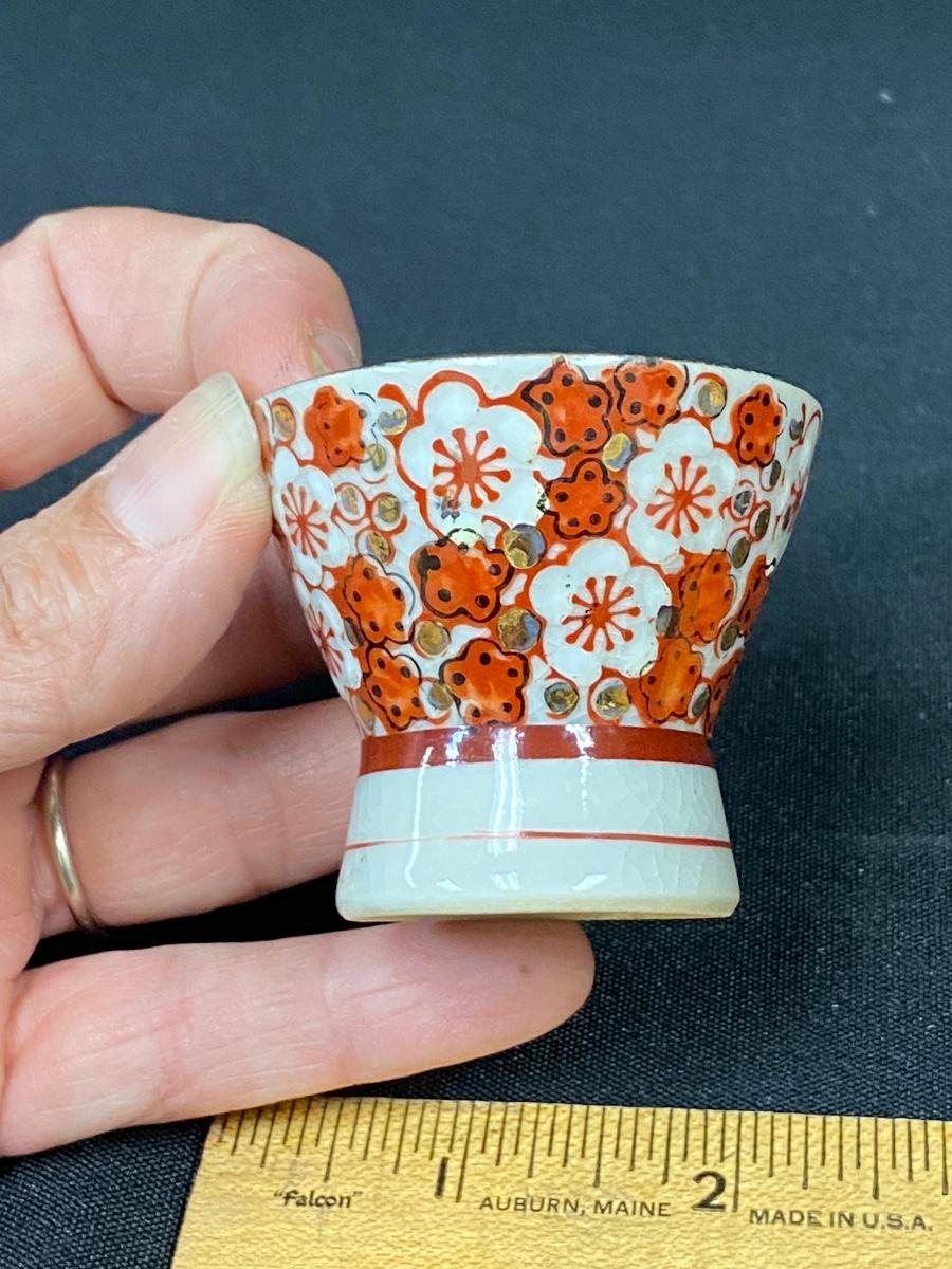 Orange and White Floral Mini Tiny Saki Cup. Good condition. 2" size.