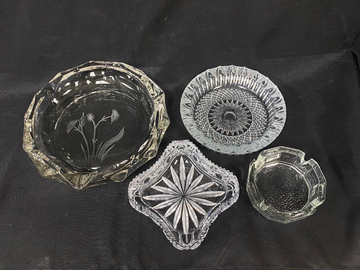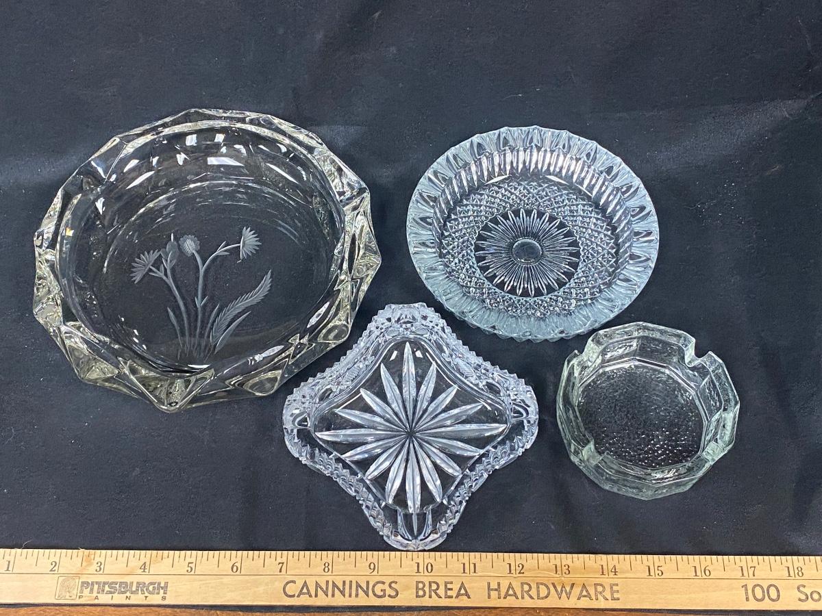 Lot of Four Vintage Crystal Glass Ashtray Trinket Change Dishes