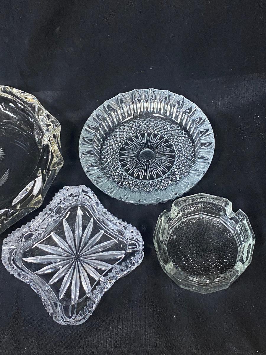 Lot of Four Vintage Crystal Glass Ashtray Trinket Change Dishes. Good condition, each different.