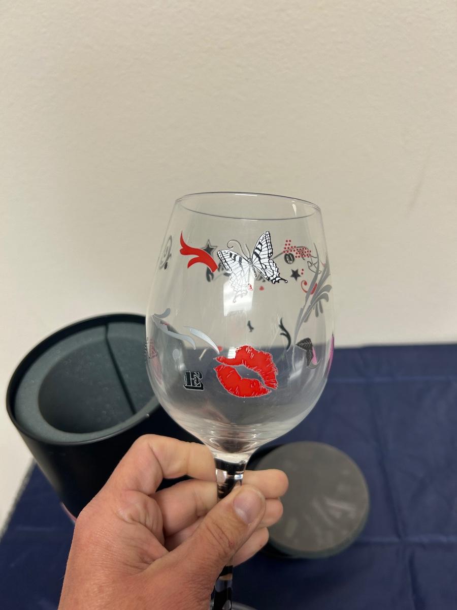 GLAM Patterned Wine Glass with Metal Tin Box